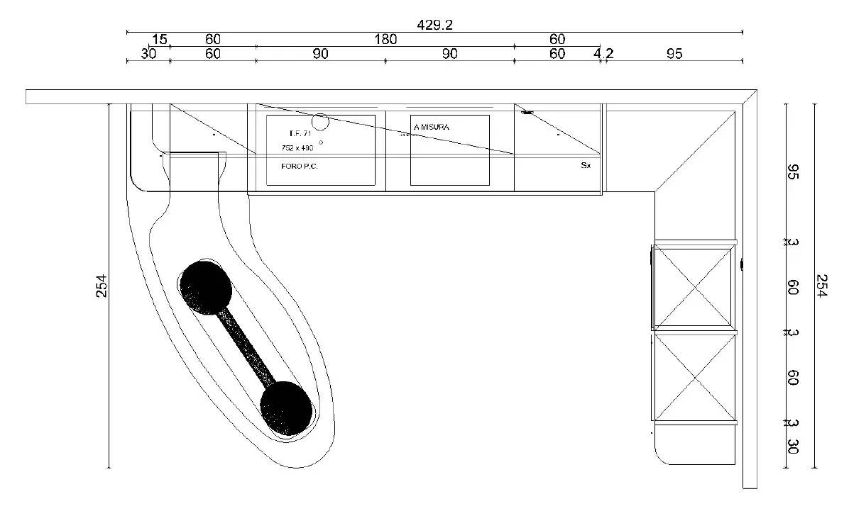 - Disposizione: ad angolo