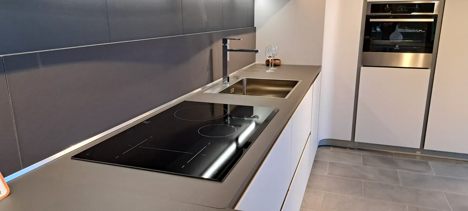 Questa cucina Ola 20 è disposta ad angolo, ma ci sarà possibile indicarti anche ulteriori assetti, sempre adatte per te ed in materiali di prima scelta.