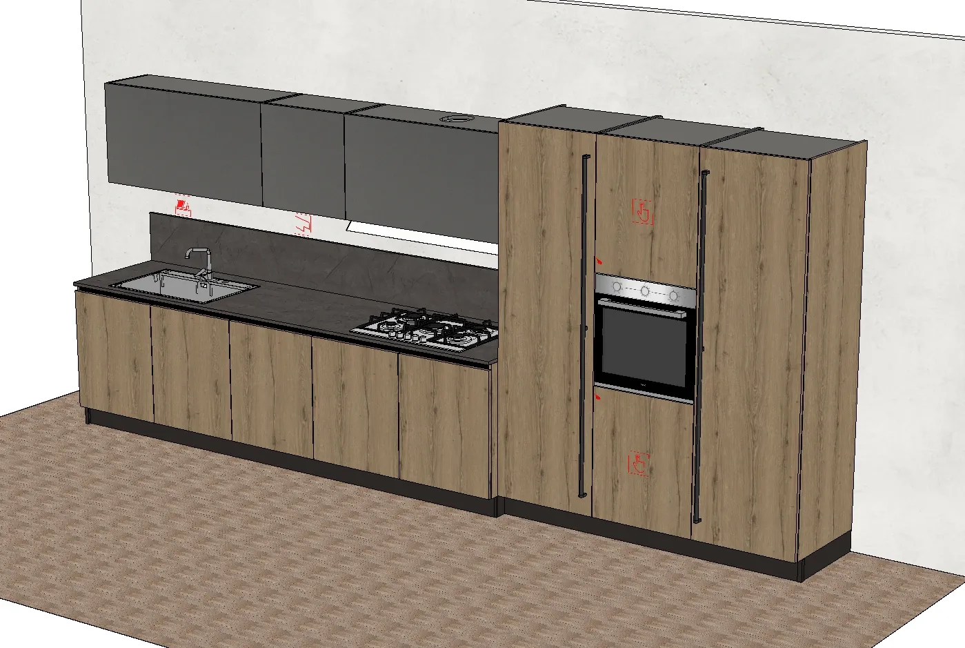 Presentiamo la cucina ASIA 10. Una cucina in cui l anta in legno Rovere nodato liscia, si abbina perfettamente con i pensili in laminato Fenix Grigio Londra. Gola, zoccolo e nuove maniglie verticali sono in finitura nera. Linee pulite esaltate dalla essenzialità della maniglia verticale in metallo in varie finiture. Piano e schienale in laminato proposto in sp. cm.2. Asia 10 è una cucina dal design sempre attuale, da vivere e arredare con personalità. Dispone di elettrodomestici BEKO classe A+; Frigo, lavastoviglie, forno multifunzione, lavello e piano cottura a gas da cm.75. La cucina ha una lunghezza di 480cm, Altezza 216cm, Profondità 60/70cm. La consegna è compresa nel prezzo in tutta Italia, 40-50 giorni lavorativi. La nostra offerta per la cucina ASIA 10 e di 7.900,00 iva compresa, finiture a scelta dal campionario. Per maggiori informazioni contattaci via mail o passa nel nostro showroom