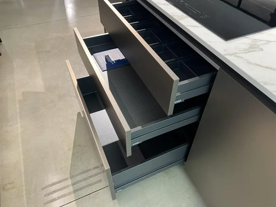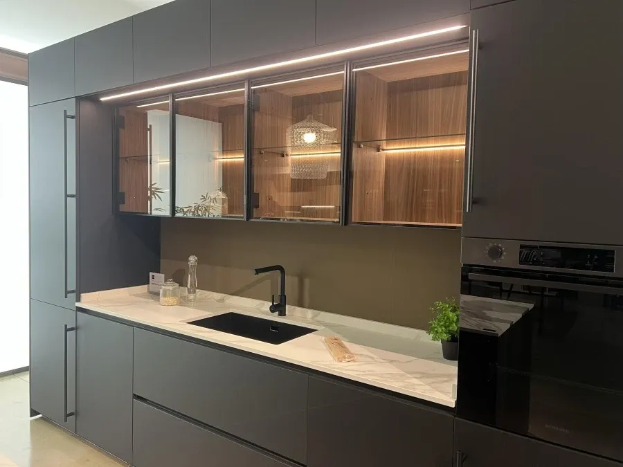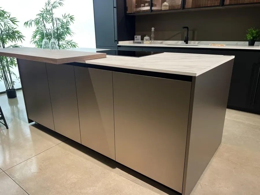 Progettata con Evolution System, Metropolis e una cucina all'avanguardia, flessibile nella diversificazione progettuale, grazie alla vasta gamma di finiture e materiali innovativi, di dettagli esclusivi, di diverse modularità e di elementi sempre più funzionali.