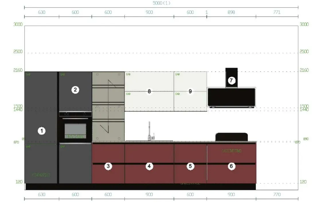 Questa cucina è dotata di elettrodomestici BOSCH di alta qualità che includono il piano cottura Bosch PVS631FB5E, il forno Bosch HRA214BA0 e la lavastoviglie Bosch SMV2ITX48E. Ogni apparecchio è stato selezionato per offrire prestazioni eccellenti e affidabilità nel tempo. Il frigocongelatore Bosch KIV86NSEO assicura ampio spazio per conservare gli alimenti freschi, mentre la cappa Elica SHIRE NERA mantiene l'aria pulita ed esente da odori.