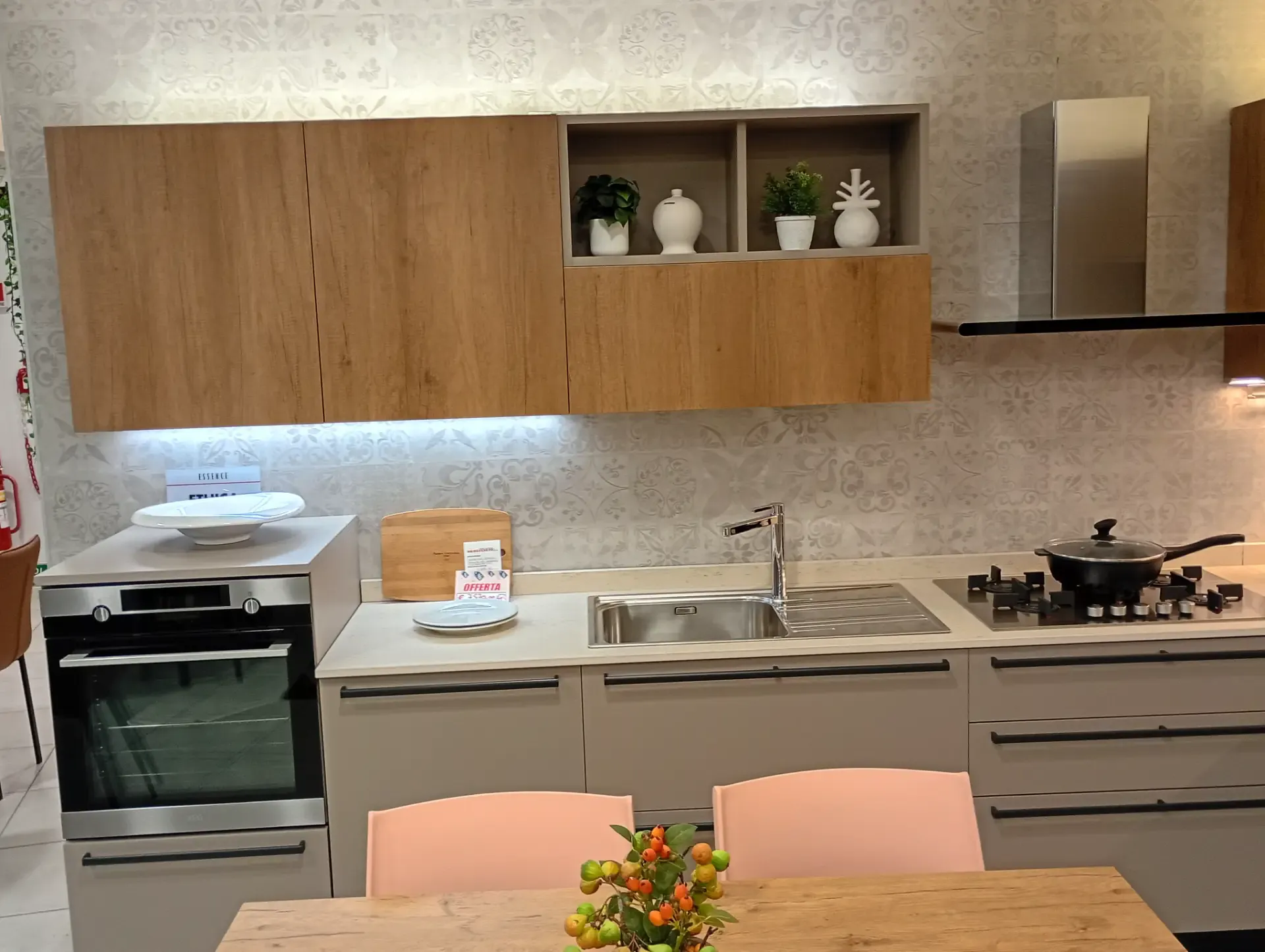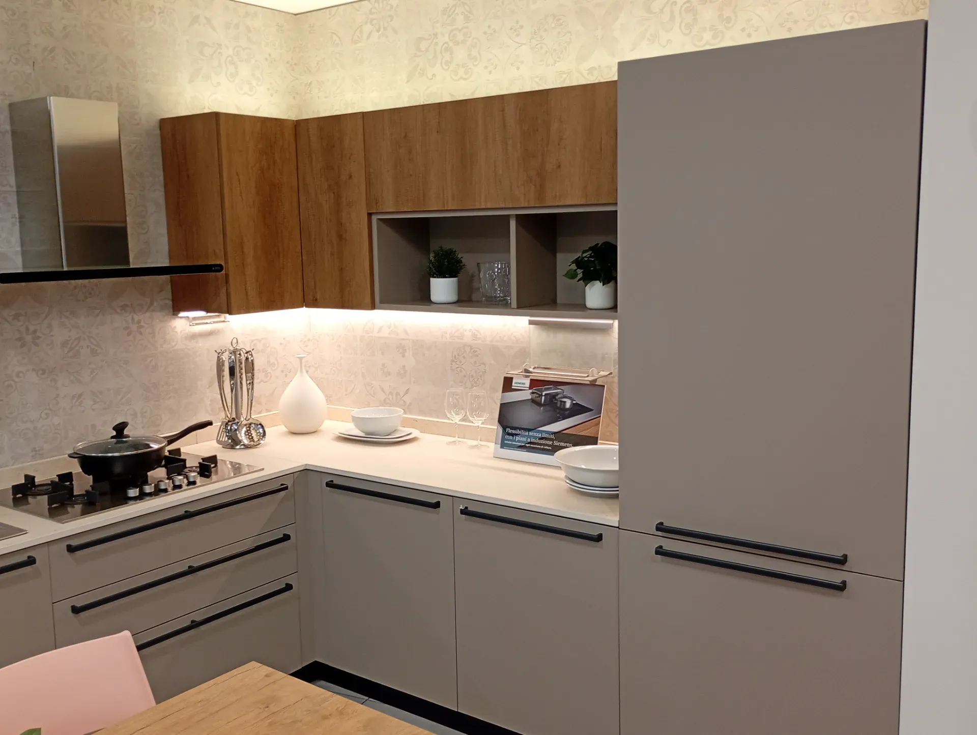 Cucina super scontata angolare dotata dei migliori elettrodomestici, con top moderno resistente ai graffi.