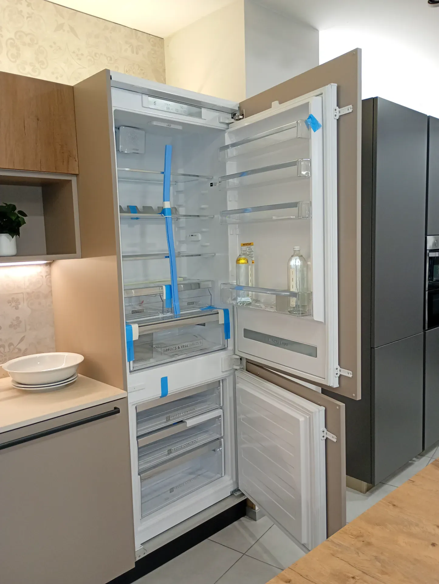 Il piano cottura a 5 fuochi e il frigo su colonna da 75 rendono questa cucina adatta anche alle famiglie più numerose.