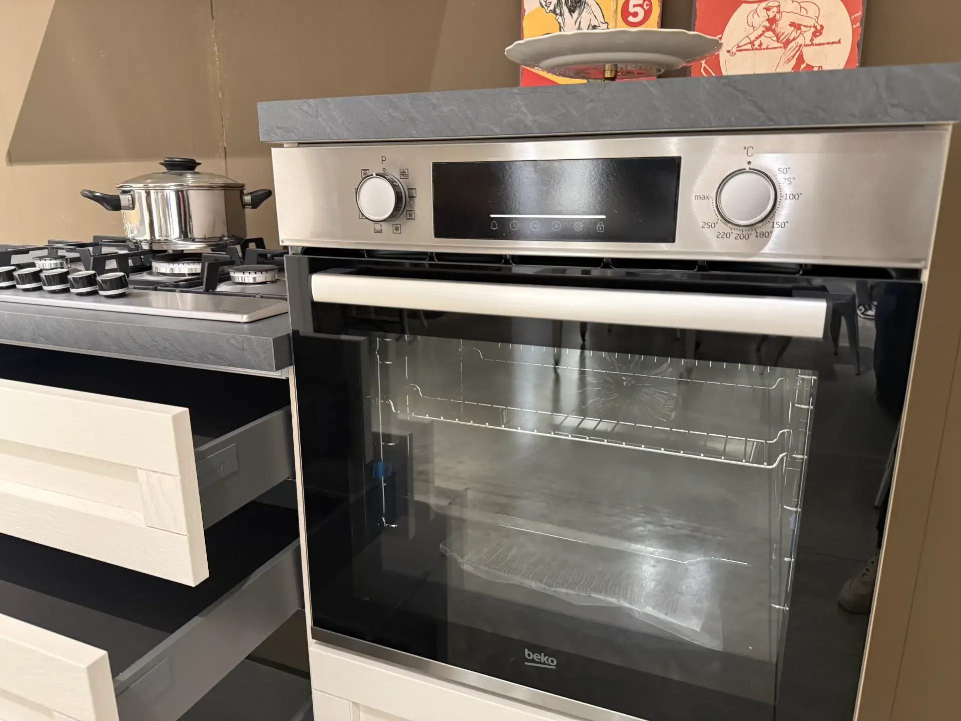 libertà di cottura su diversi livelli. SoftMove: apertura e chiusura assistita della porta del forno. - Piano Cottura: BEKO: Piano cottura a gas, 75cm. Piano a cottura gas con stepFlame Technology per un controllo preciso della fiamma tramite 9 livelli di potenza. Bruciatore