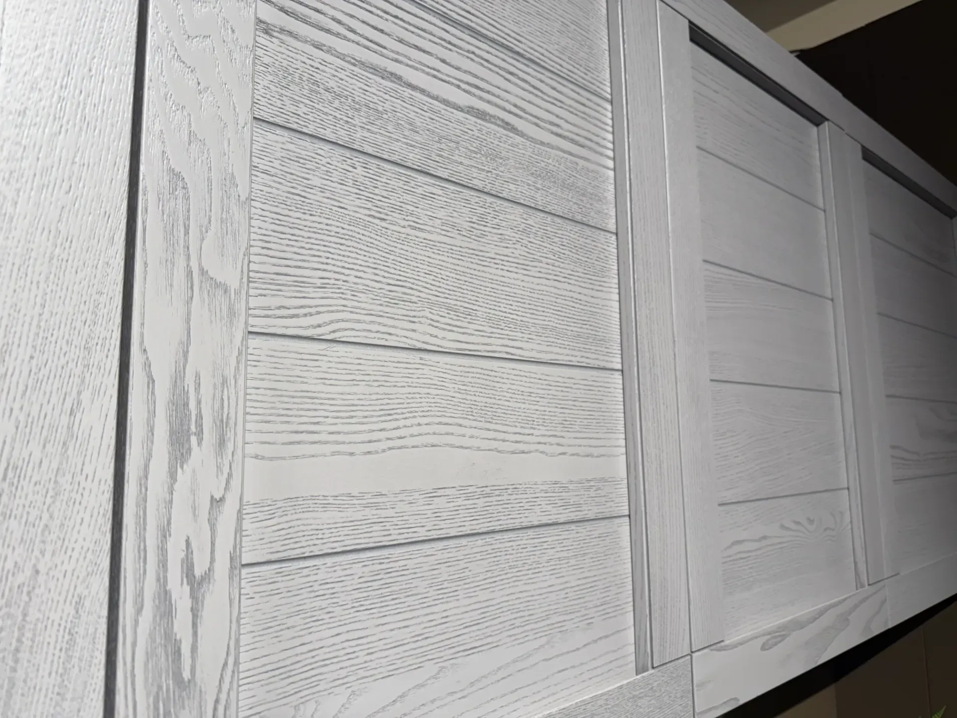 - Ante pensili: Massello di frassino, colore Grigio