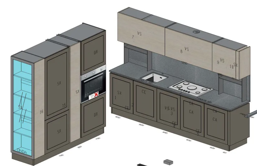 - Materiale nobilitato: la cucina è realizzata con materiali di alta qualità che garantiscono resistenza e durata nel tempo.
