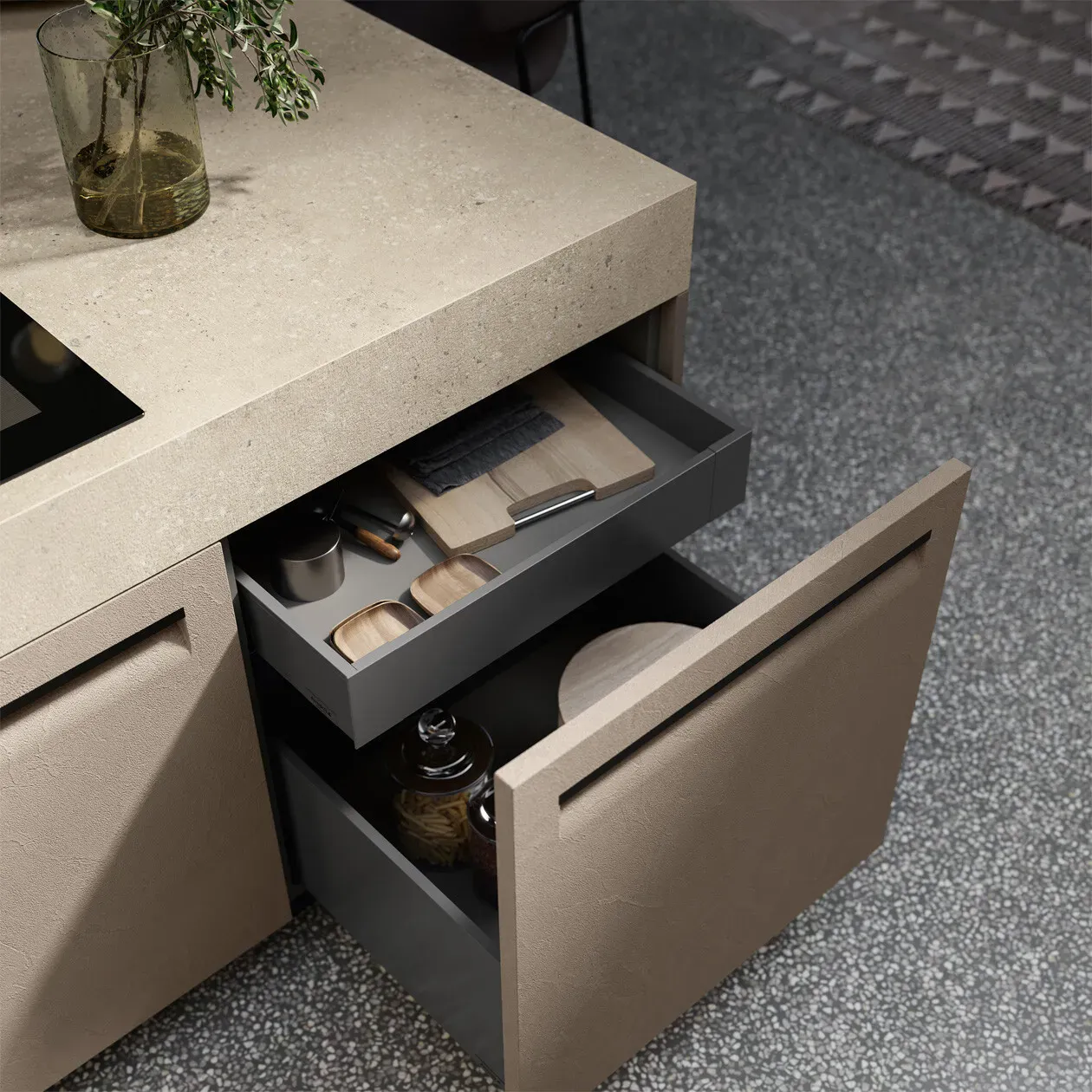 Questo modello in laminato materico sa mixare al meglio funzionalità e stile, per l'uso di materiali di qualità e che resistano nel tempo scelti da noi.