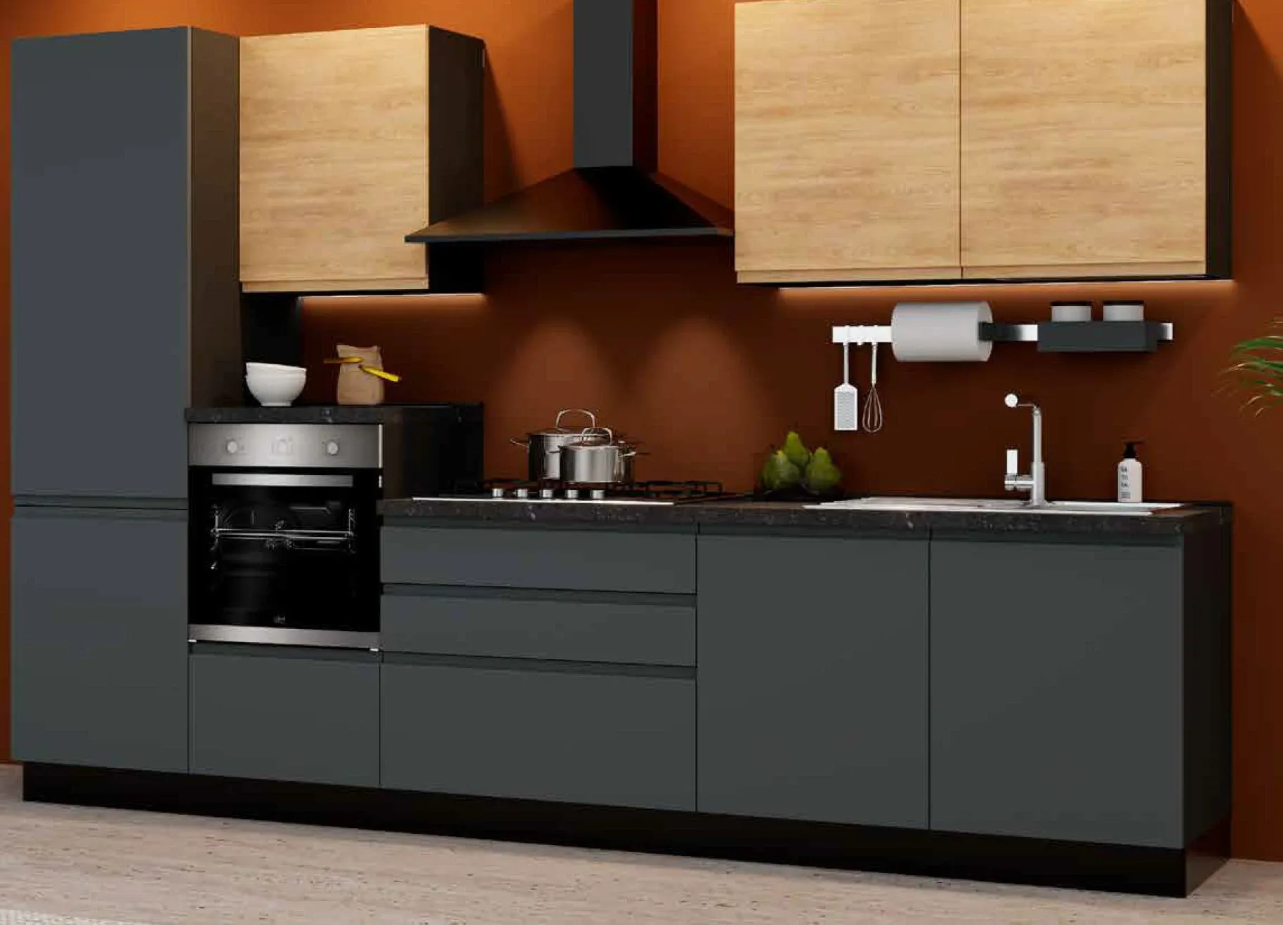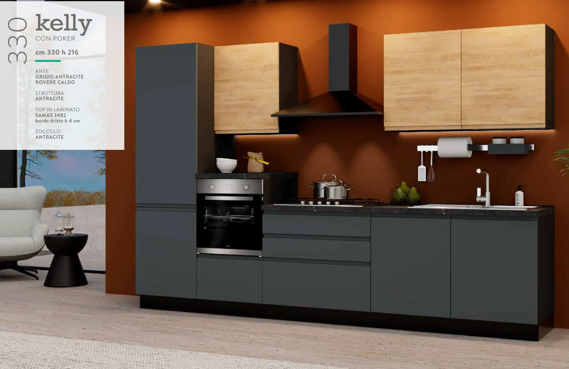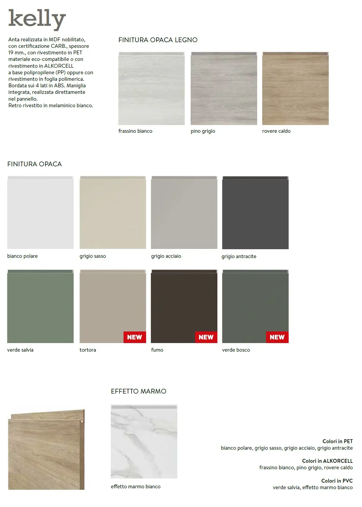 modello Kelly in laminato opaco, poiché realizzata in materiali di qualità e che resistano nel tempo. Il colore della cucina non è mai da prendere sotto gamba: se desideri una composizione altri colori, questo modello