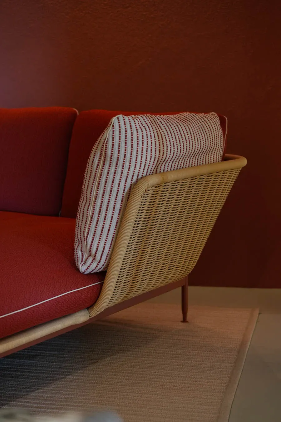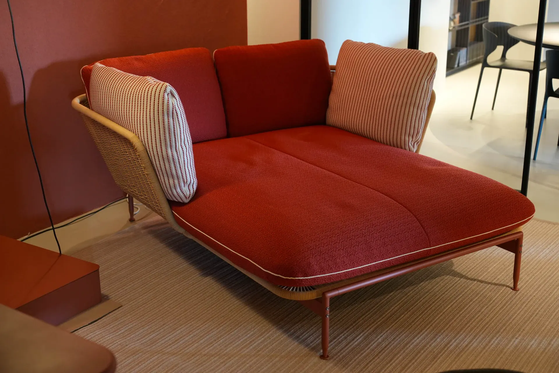Il Love Bed Esosoft è molto più di un semplice elemento d'arredo per gli spazi esterni: è un'oasi di relax che invita a concedersi momenti di puro piacere e riposo. È come un'isola che promette di offrire ore di sollievo sotto il caldo sole estivo o nell'ombra rinfrescante di una giornata calda. Concepito con la massima cura per trasformare gli ambienti all'aperto in eleganti spazi funzionali, Esosoft Outdoor rappresenta un connubio perfetto tra il contemporaneo e la tradizione artigianale. La sua struttura, sorretta da un esoscheletro robusto, è avvolta da una scocca in fibra sintetica di PVC con anima interna in Nylon intrecciata a mano che richiama la naturalezza dei materiali organici, donando al Love Bed un'aura di autenticità e calore accogliente, mentre i cuscini posizionati sullo schienale offrono un comfort avvolgente e rilassante. I cuscini sono realizzati con materiali idrorepellenti, garantendo una protezione efficace contro l'acqua e consentendo una facile manutenzione. Inoltre, la struttura metallica del Love Bed è dotata di viti a vista che facilitano il processo di smontaggio, rendendo il riciclo dei componenti una pratica semplice e responsabile al termine del suo ciclo di vita.