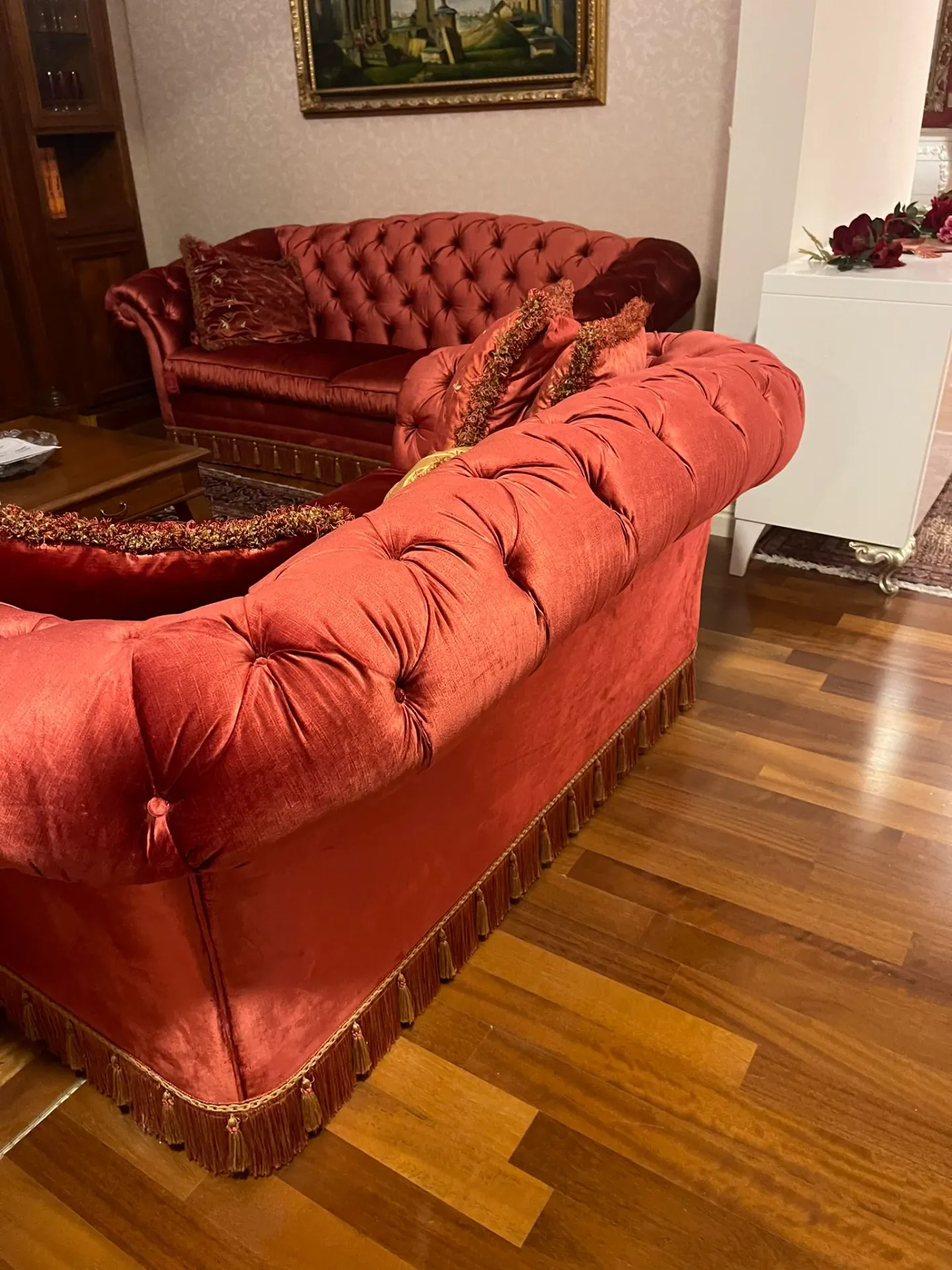 L.200 P.110 H.95 IN TESSUTO CAT.E COLOR SILVER UNITO MATTONE COMPLETO DI CUSCINI MOD.DAVID COSI' DIVISI: N.2 CUSCINI 55X55 DI SERIE ART. IBISCUS MATTONE N.1 CUSCINO 45X45 DI SERIE ART. SPOT GRANDE BRONZO DIVANO C/FRANGIA E PIEDINI IN LEGNO