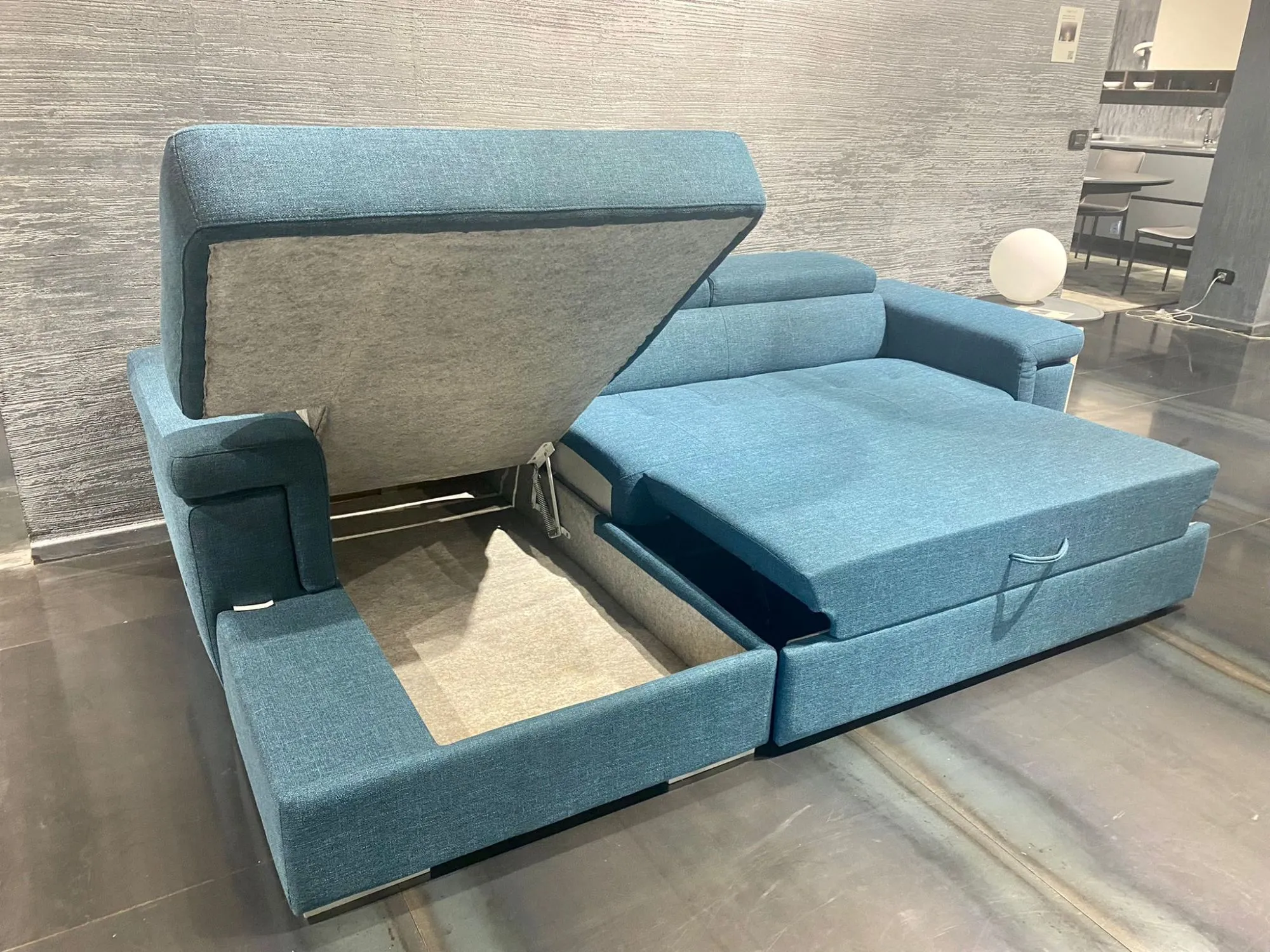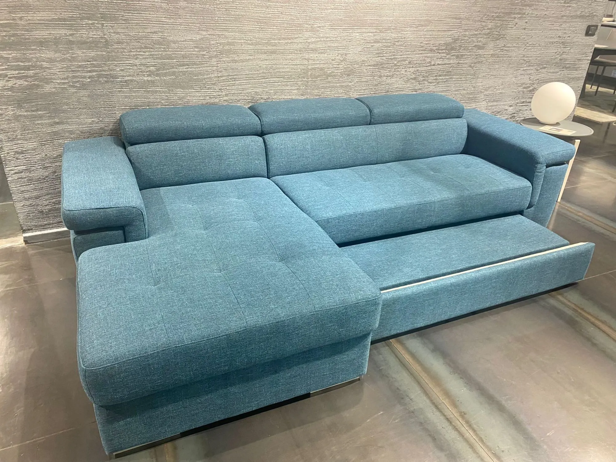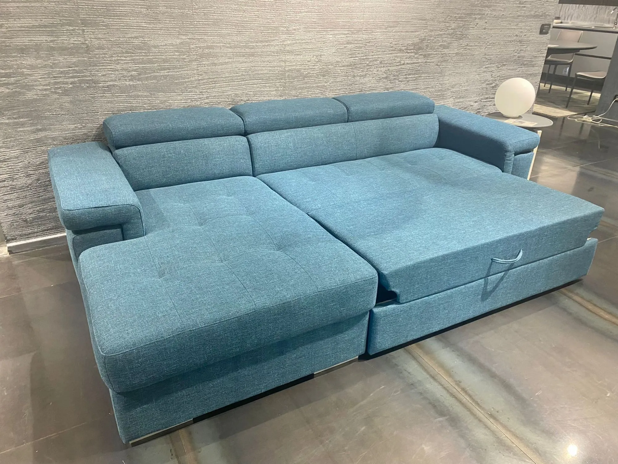 Mark il divano con poggiatesta regolabile manualmente con la funzione a cricchetto, la panchetta estraibile e la chaise-longue contenitore è perfetto in ogni ambiente della casa. Poggiatesta regolabili e sedute trapuntate offrono un confort superiore in un sofà che può passare da divano relax alla sua funzione letto, grazie alla panchetta estraibile. Completano il modello Mark la penisola contenitore e i braccioli sagomati nati per offrire una comodità unica. Disponibile a riordino in diverse dimensioni, tessuti e colori. Dimensioni: Lunghezza: 270cm. Altezza: da 72 a 90 cm (in base alla posizione del poggiatesta). Profondità: 98 cm, 163 cm max (chaise-longue). Altezza seduta: 43 cm