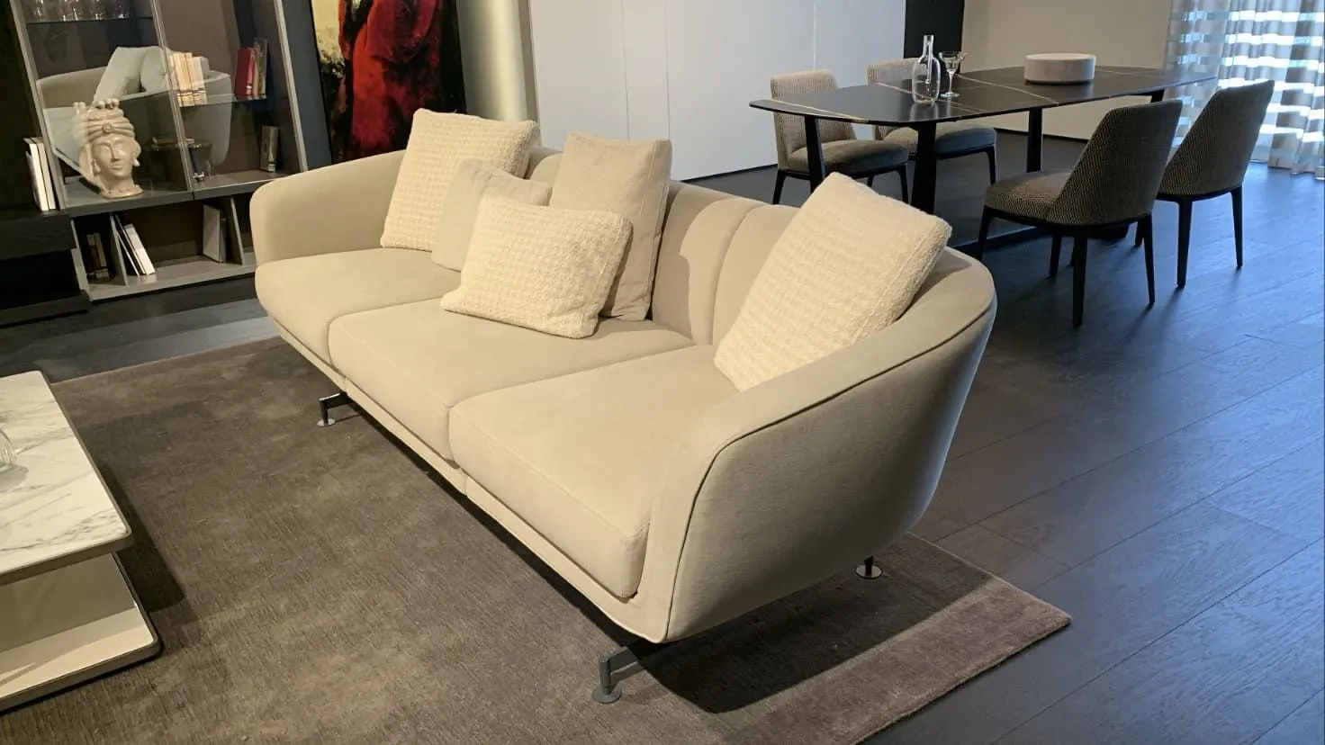 Il soggiorno è la zona della casa dove più spesso accoglierai familiari e amici per trascorrere qualche ora chiacchierando e rilassandoti: in un soggiorno di tutto rispetto di certo non mancherà il giusto numero di posti a sedere; perciò è importante valutare anche questo fattore prima di scegliere un imbottito: il modello qui visibile è un 3 posti.