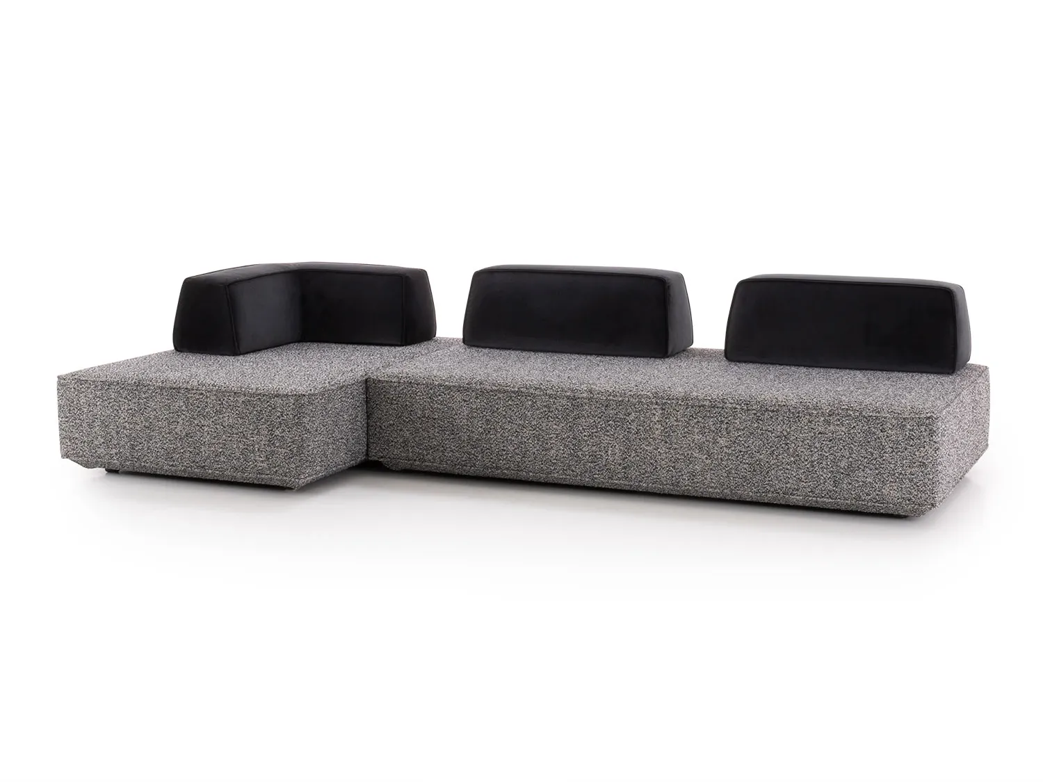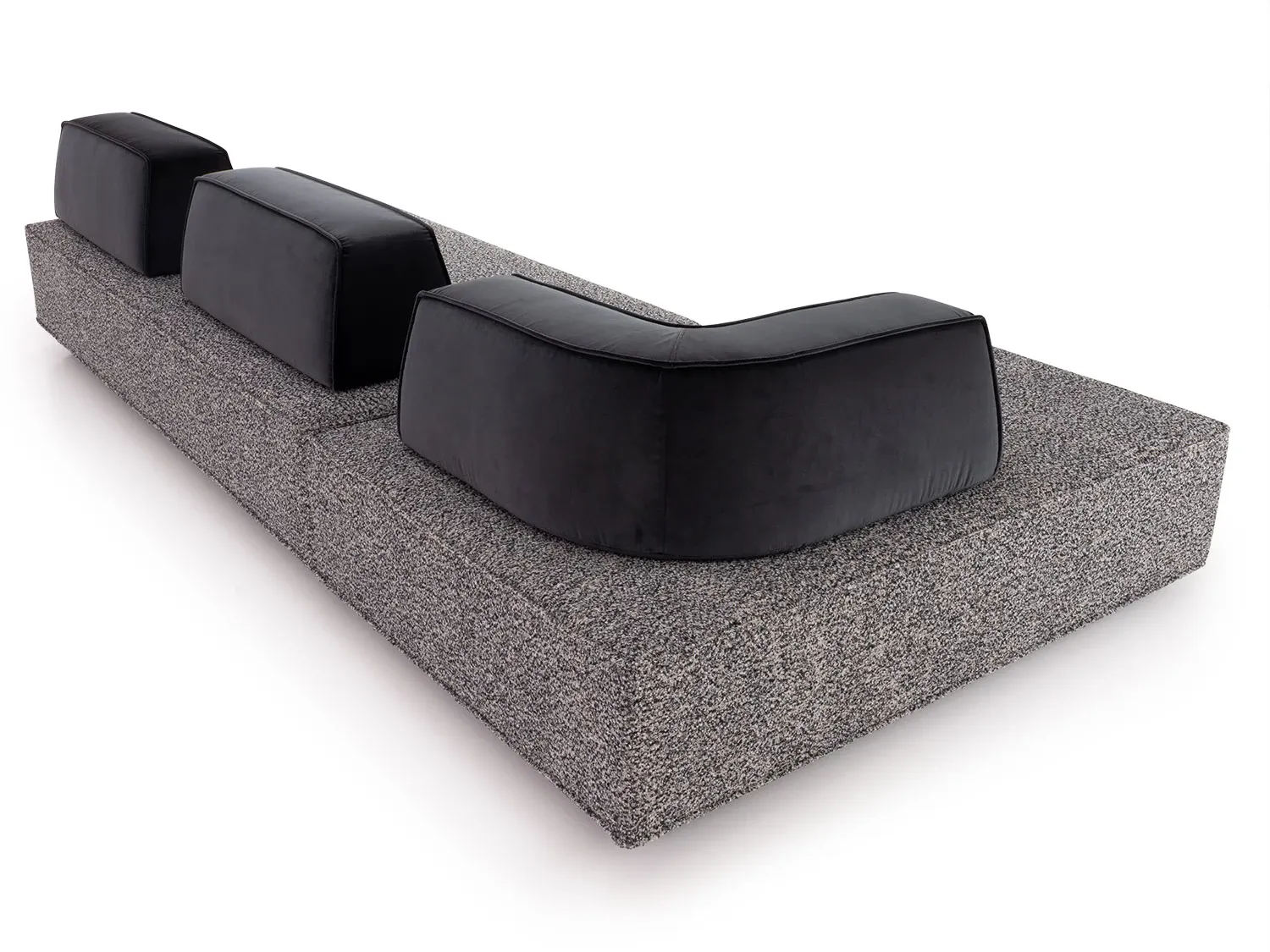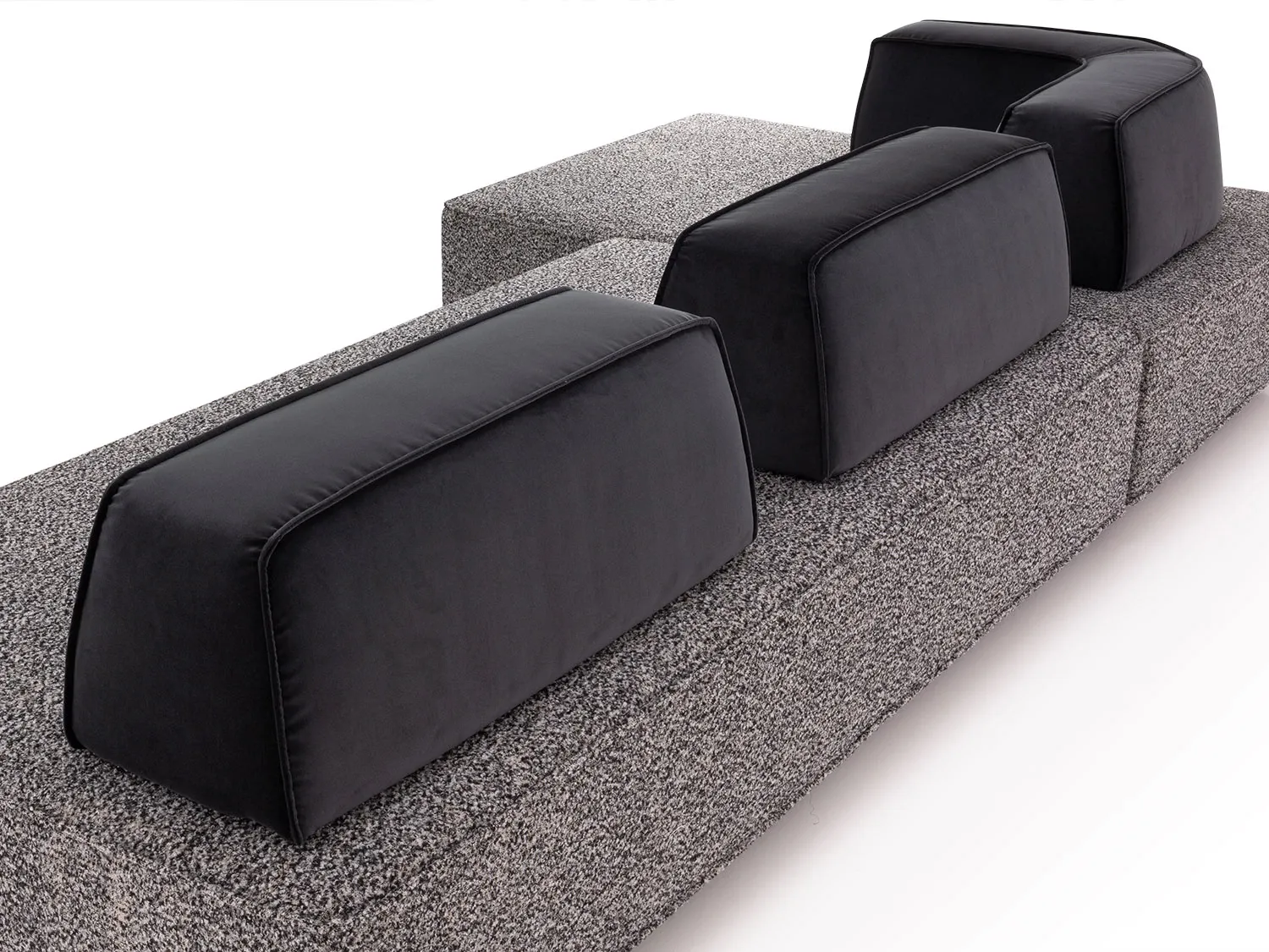 I tre schienali a sezione trapezoidale - due lineari e uno angolare - sono zavorrati e dotati di sistema antiscivolo, così da garantire un adeguato sostegno del corpo durante la seduta.