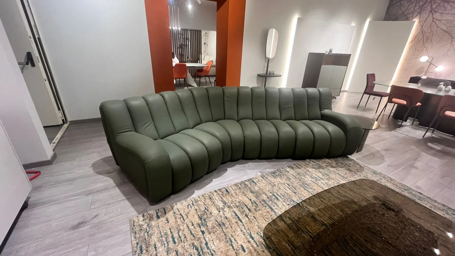 DIVANO FRANCO FERRI MODELLO SCERVINO IN PELLE NEWBUCK VERDE. L 340