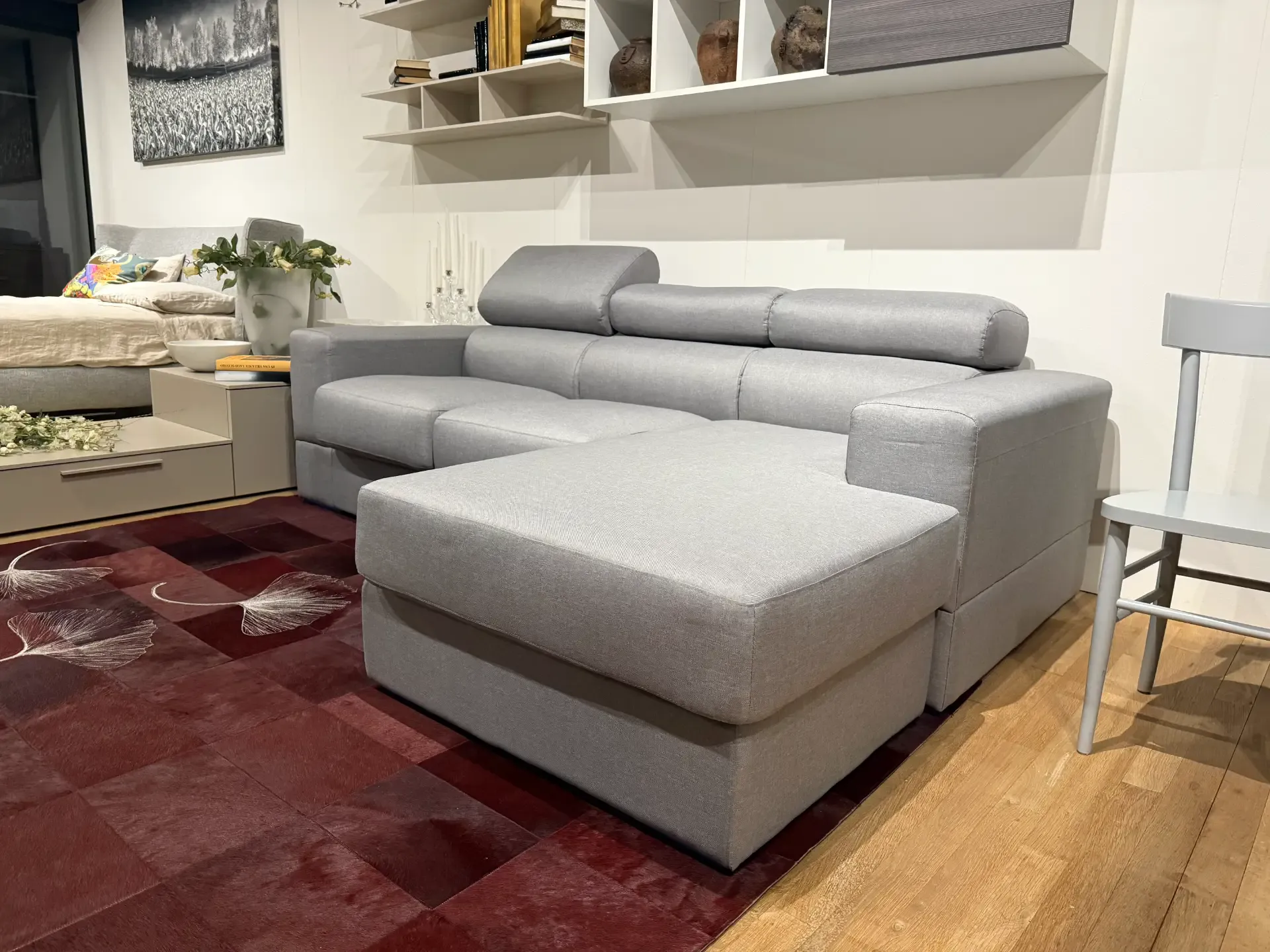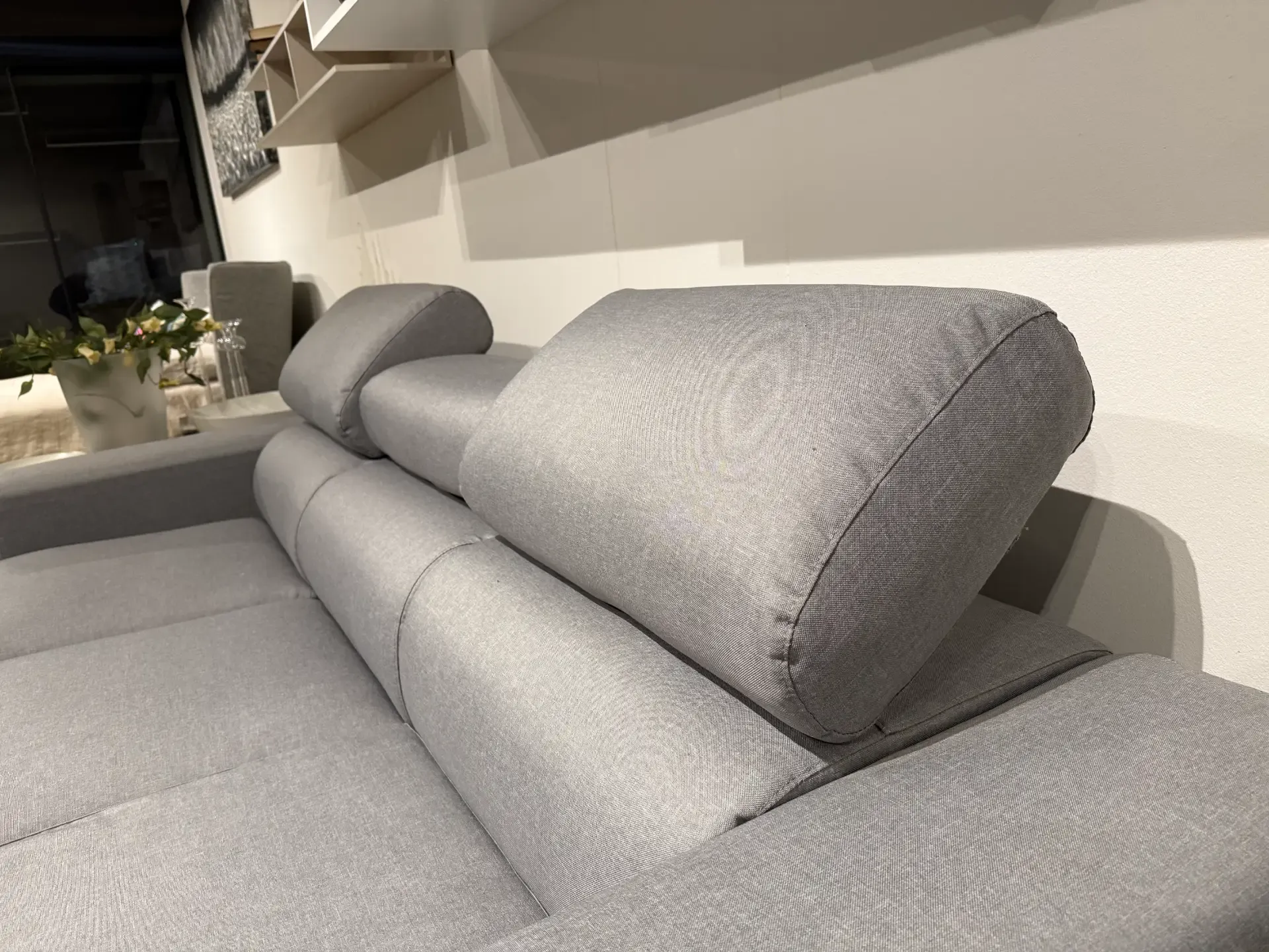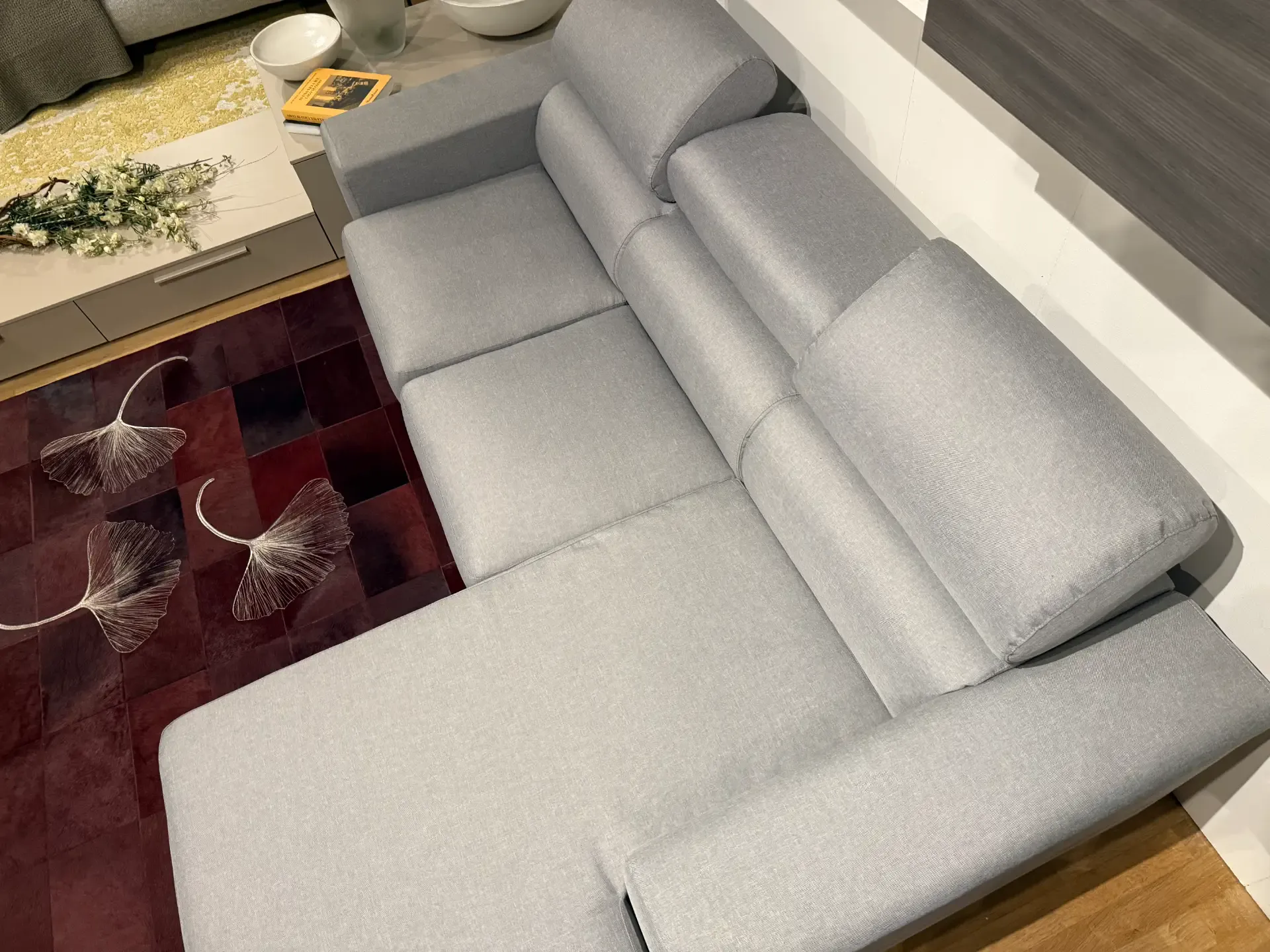 Il divano è in tessuto antimacchia grigio, ed e sfoderabile solo nei cuscini di seduta e poggiatesta.