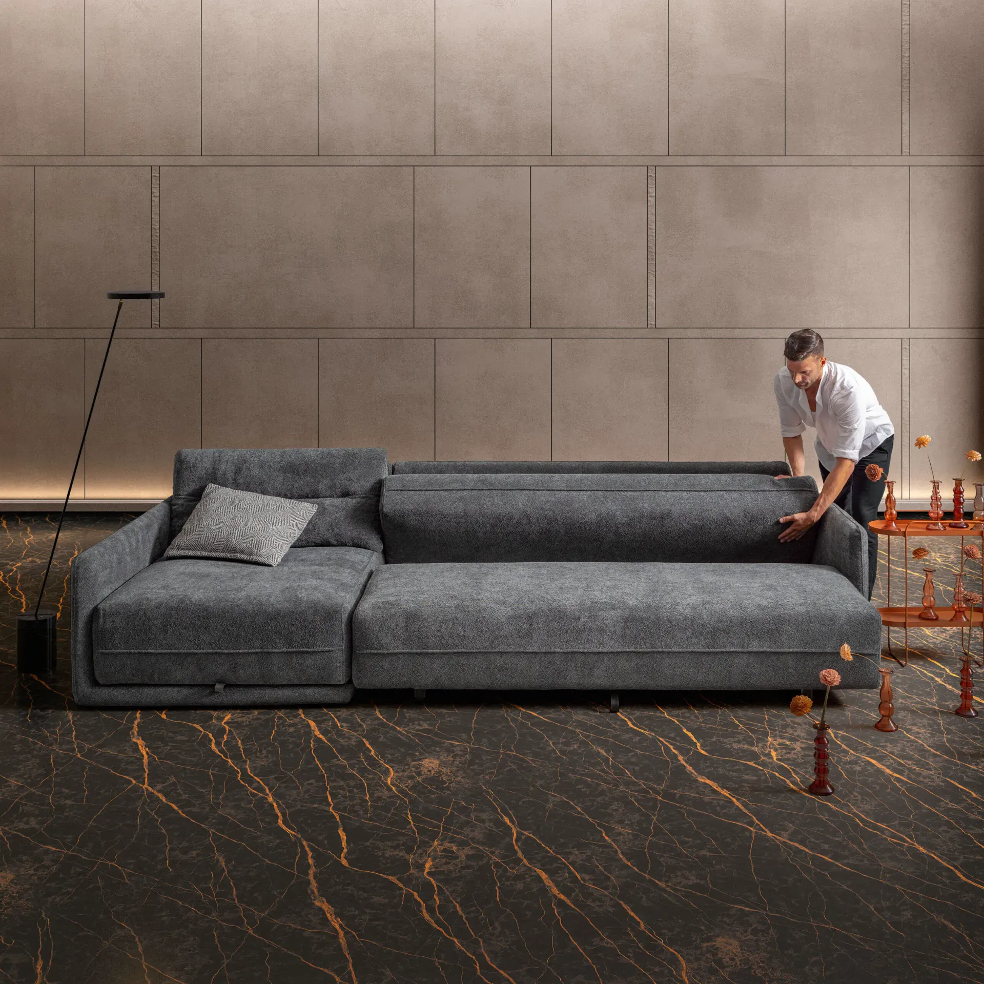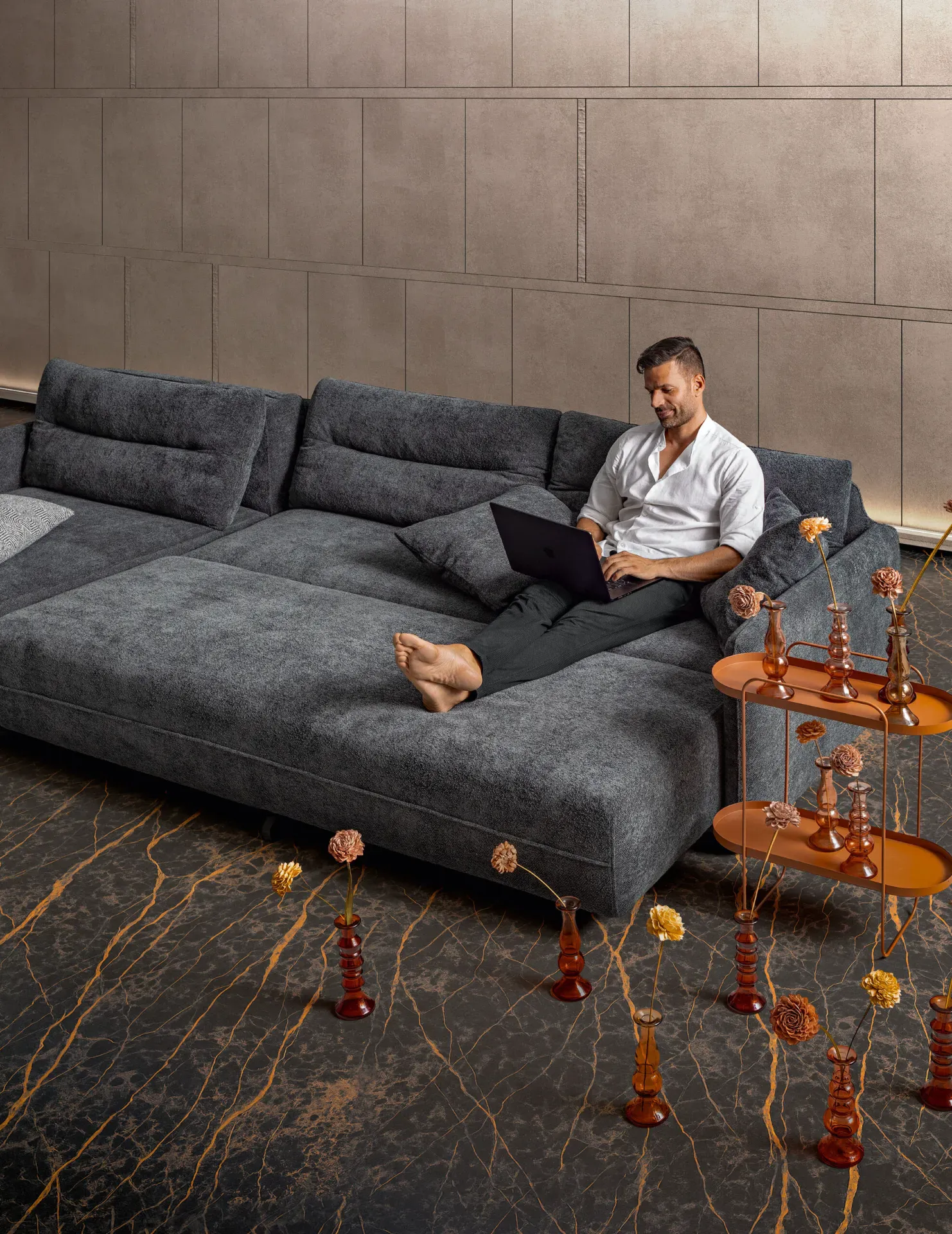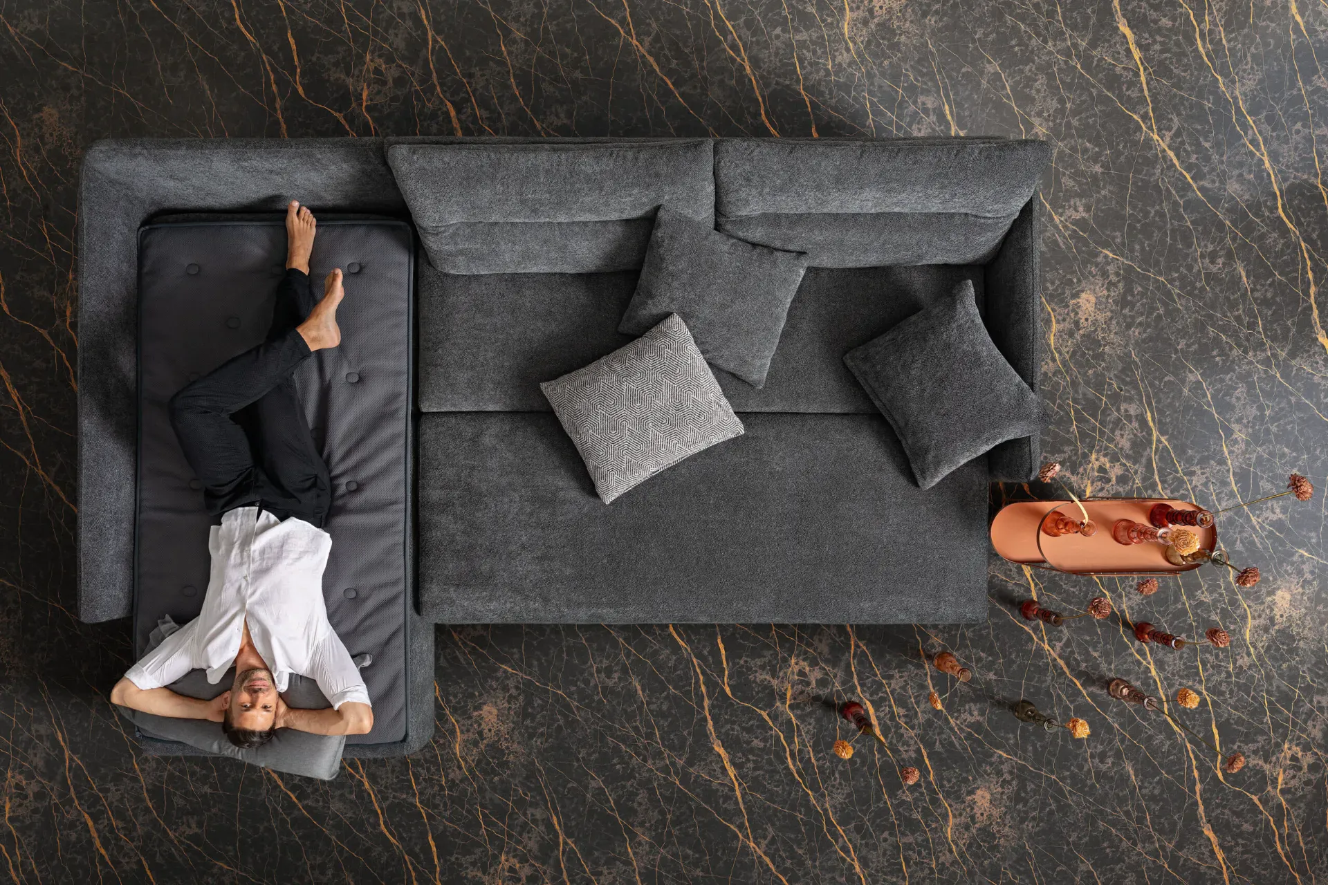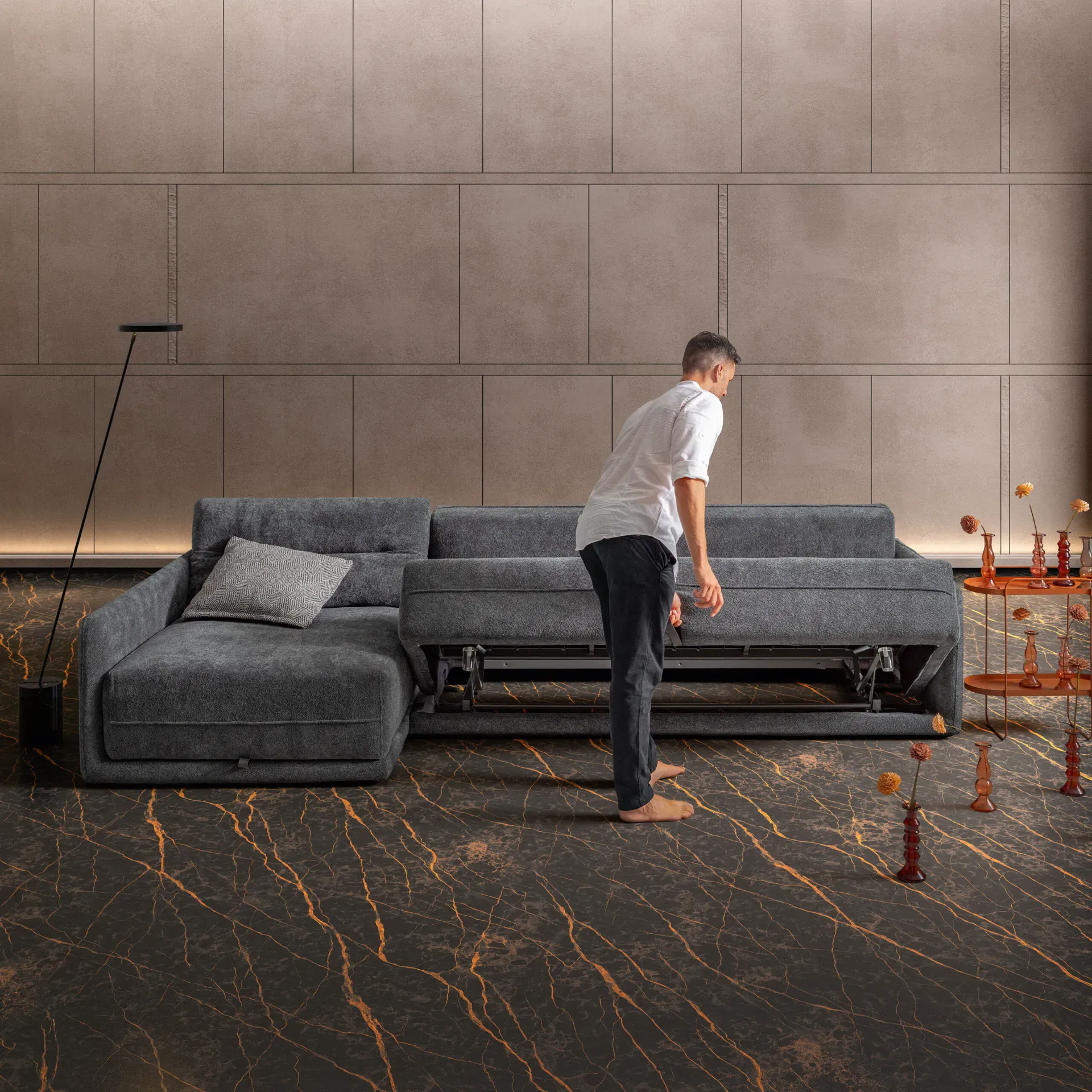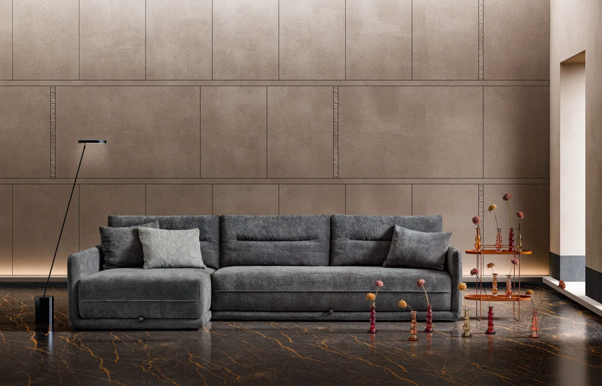 Al fine di organizzare al meglio lo spazio nel soggiorno, occorre scegliere gli arredi secondo conformazione e dimensione degli ambienti, selezionando dunque anche il tipo di imbottito che fa per te tra divani, poltrone, divani letto e molto altro; il modello visibile in foto appartiene alla serie di letto con penisola di grande qualità firmati dal marchio.