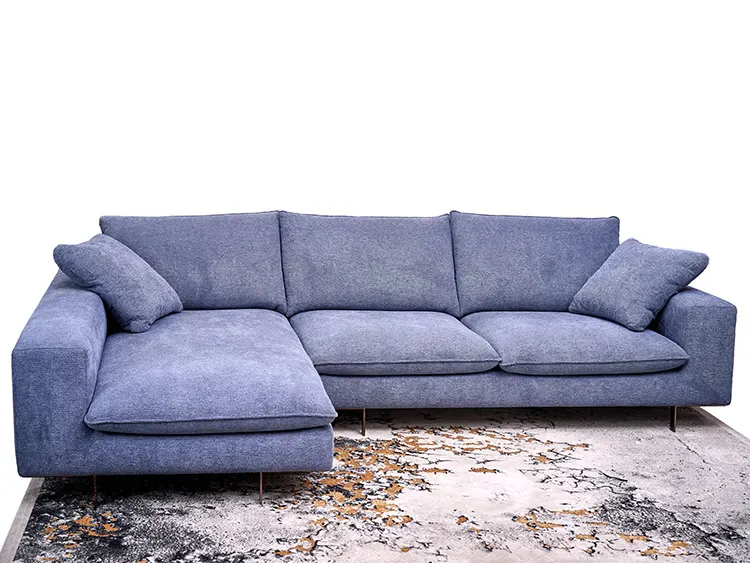 Composto da: - Chaise longue con bracciolo lungo sx e elemento 3 posti dx; - Completamente sfoderabile; - struttura in Multistrato e Massello di abete; - Piedi in acciaio inox h 17 cm disponibili in 4 finiture (expò nero nickel) - Rivestimento in tessuto cat. Basic col. Mito 45 BLU - Dimensioni cm L 283 x P 97 / 165 x H 80 x Hs 43