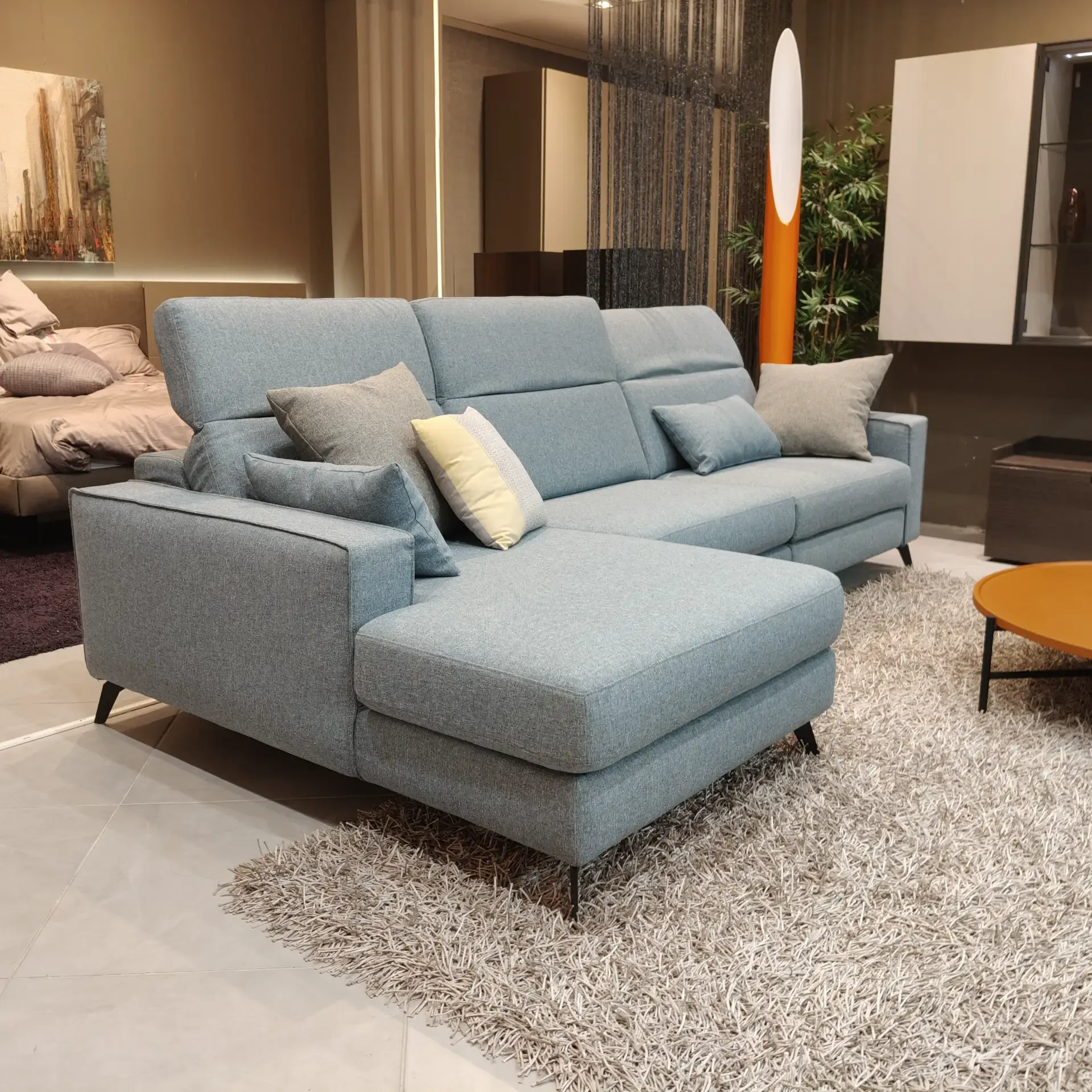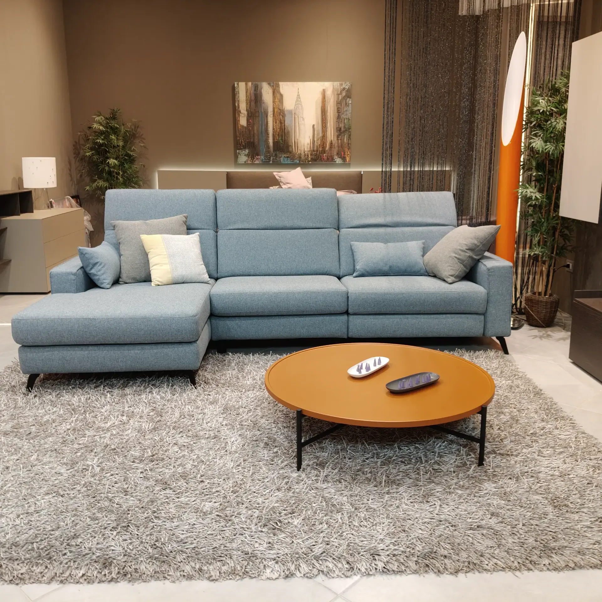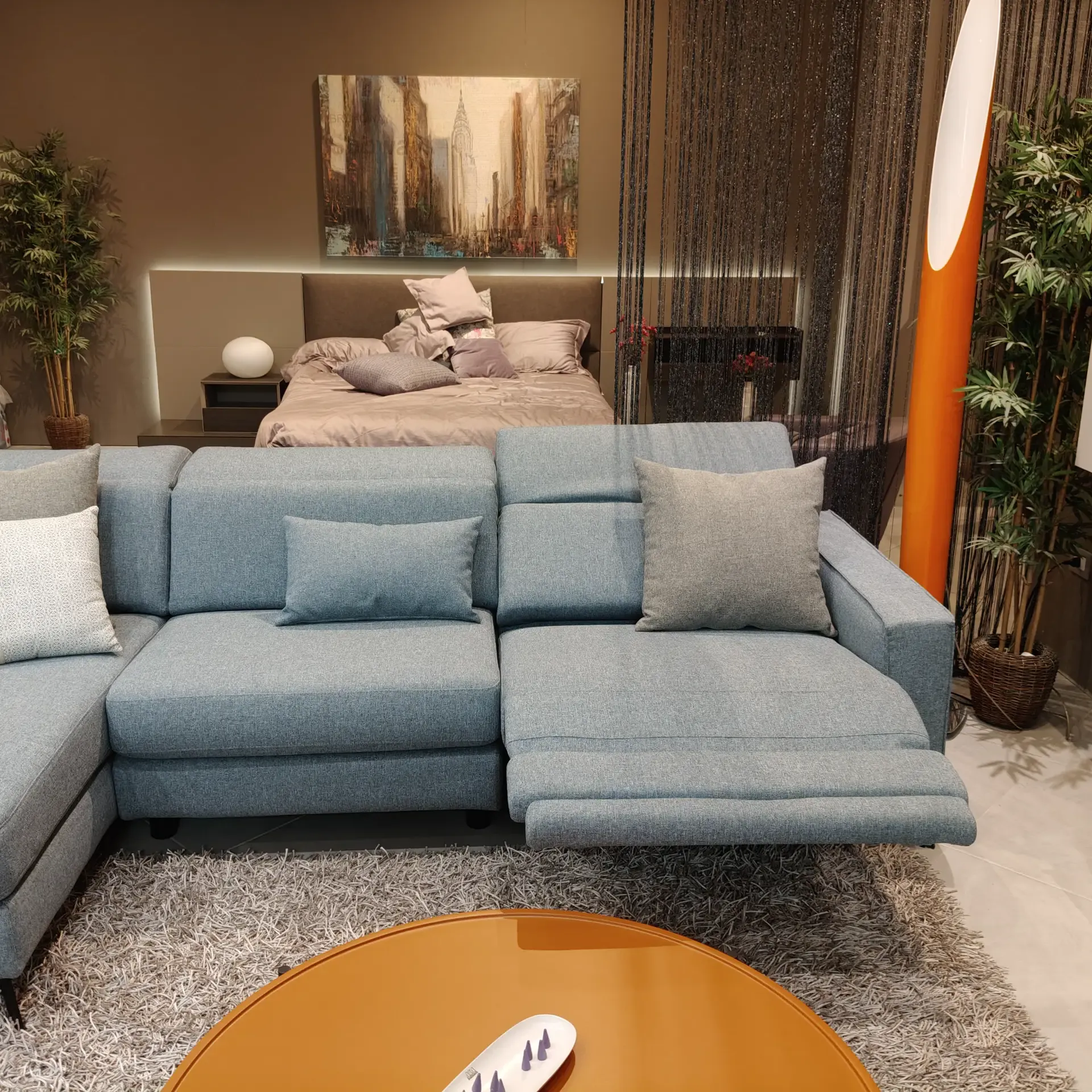 Divano in tessuto con meccanismo poggiatesta a 7 posizioni, unico nella comodità garantita da una chaise longue laterale e la presenza dell innovativa funzione relax elettrica, a garanzia di una piacevole estensione del comfort, divano sfoderabile del rivestimento che non risulta in alcun modo osteggiata dalla presenza dei pratici meccanismi relax.