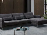 Divano componibile con chaise-longue rivestito in tessuto nei diversi colori del campionario a richiesta.E'completamente sfoderabile. E' un modello di divano dal design innovativo ed allo stesso tempo molto raffinato.Viene realizzato con materiali di alta qualità. La struttura interna è in legno massello di abete,l'imbottitura dei cuscini della seduta viene altresì supportata dall'impiego di cinghie elastiche.I cuscini della seduta hanno l'imbottitura interna in poliuretano espanso,mentre i cuscini dello schienale sono in misto piuma. I piedi vengono realizzati in alluminio Nickel nero semilucido di altezza cm.15. E' un modello di divano,disponibile sia nella versione lineare con braccioli laterali,nelle misure: cm.158/178/198/218 di lunghezza x cm.98 profondità x cm.86 altezza. Il bracciolo ha una larghezza di cm.11. E' altresì disponibile nella versione con l'elemento chaise-longue nelle diverse dimensioni a richiesta cm.288 lunghezza x cm.168 profondità ed anche cm.300 lunghezza x cm.168 profondità. La composizione-divano come foto da cm.300 lunghezza x cm.98/168 profondità con elemento-chaise-longue viene proposta nella soluzione in promo con lo sconto del 50%. Il prezzo-promo è già comprensivo del trasporto e del relativo montaggio in tutte le Regioni d'Italia. Per qualsiasi informazione,potete contattarci attraverso il nostro indirizzo di posta elettronica.