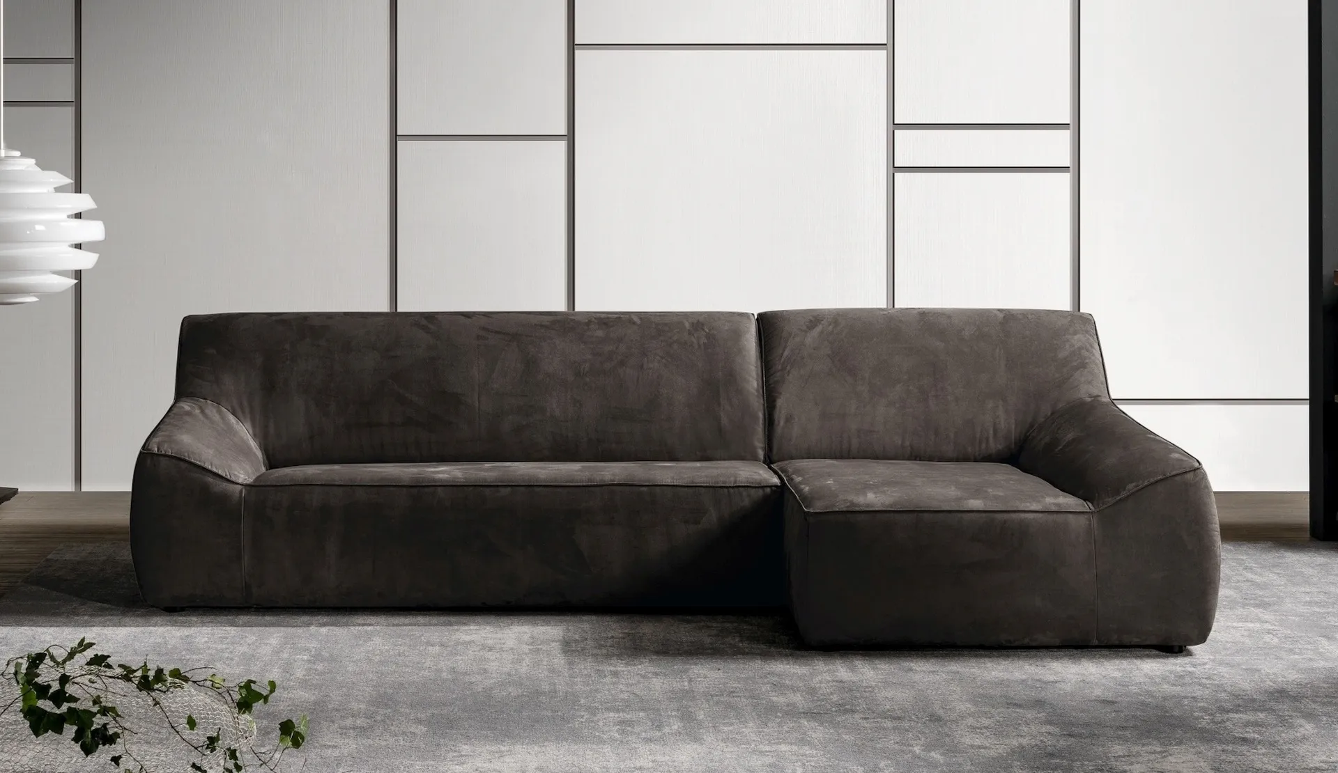 Divano Excò mod. Alfred in tessuto sfoderabile di alta qualità e di design. Divano tutto in Memory Foam. Made in Italy. Scontato. Possibilità di spedizione in tutta Italia ed Europa. Misure L.308 H.85 P. Penisola 164. Colorazioni e finiture a scelta.