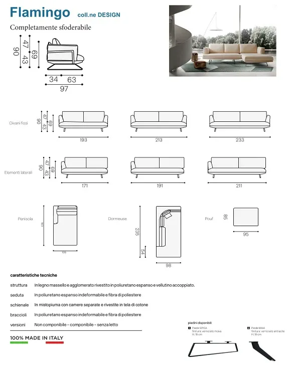 Flamingo visibile in foto sarà capace di trovare la soluzione adatta a te, definendo peculiari atmosfere in stile design che rispecchino i tuoi gusti. All'interno del tuo soggiorno passerai serate di riposo oppure inviterai familiari e amici per qualche ora in compagnia: è imprescindibile che tutta la famiglia e tutti gli eventuali ospiti si sentano comodi grazie a imbottiti versatili e accoglienti; prima di acquistare una delle nostre molteplici composizioni arredative, considera che il modello qui visibile è un 5 posti. Le molteplici proposte di rivestimenti di cui disponiamo sono ideali per trovare soluzioni alle necessità personali in una vasta gamma di colori e finiture; questo modello rivestito in tessuto è pensato per trovare soluzioni alle più molteplici necessità di stile, assicurandoti altresì di completare dal punto di vista dell'estetica il tuo soggiorno. Rendere bello il tuo soggiorno in modo che sia del tutto funzionale sarà facile grazie ad uno dei modelli di con penisola come questo: se vuoi sentirti comodo tutti i giorni in un ambiente prettamente deputato al relax, scegli il modello