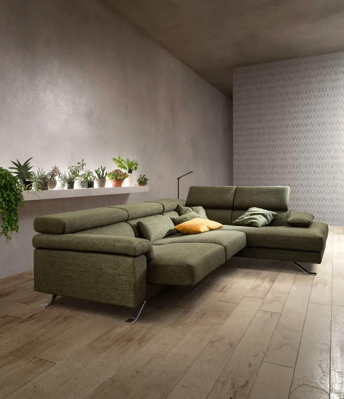 - Se vuoi arredare il tuo living seguendo un appeal moderno, opta per imbottiti in tonalità accese, mentre se desideri ricreare un'atmosfera in stile tradizionale con un caratteristico effetto di accoglienza, potrai trovare rivestimenti in nuance calde o intermedie: l'imbottito Shine è rivestito in tessuto, materiale perfetto per ottenere sofficità nel tempo, nonchè di completare il living anche esteticamente.