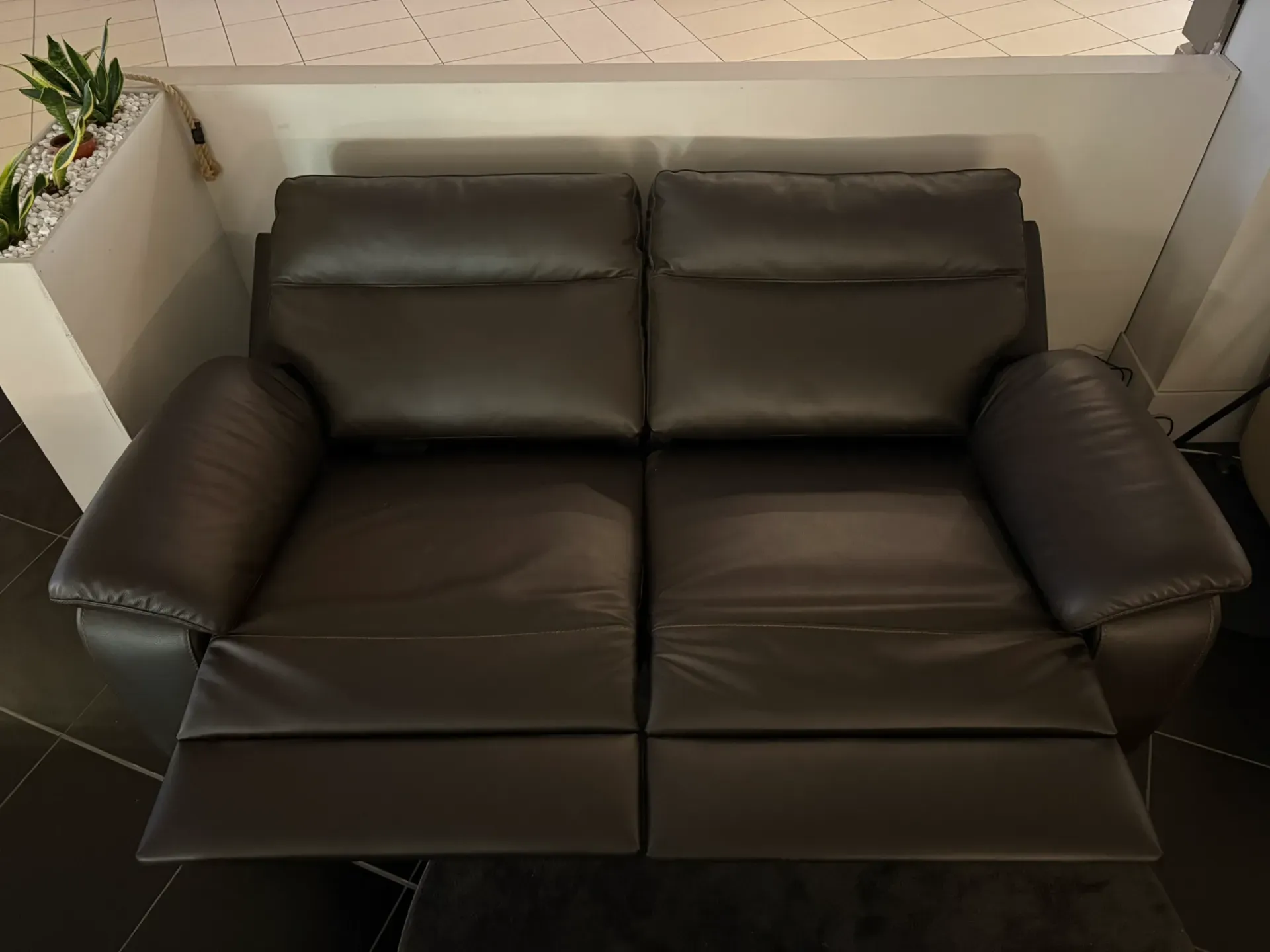Divano New York con 2 meccanismi Relax in vera pelle color Cioccolata (marrone molto scuro).