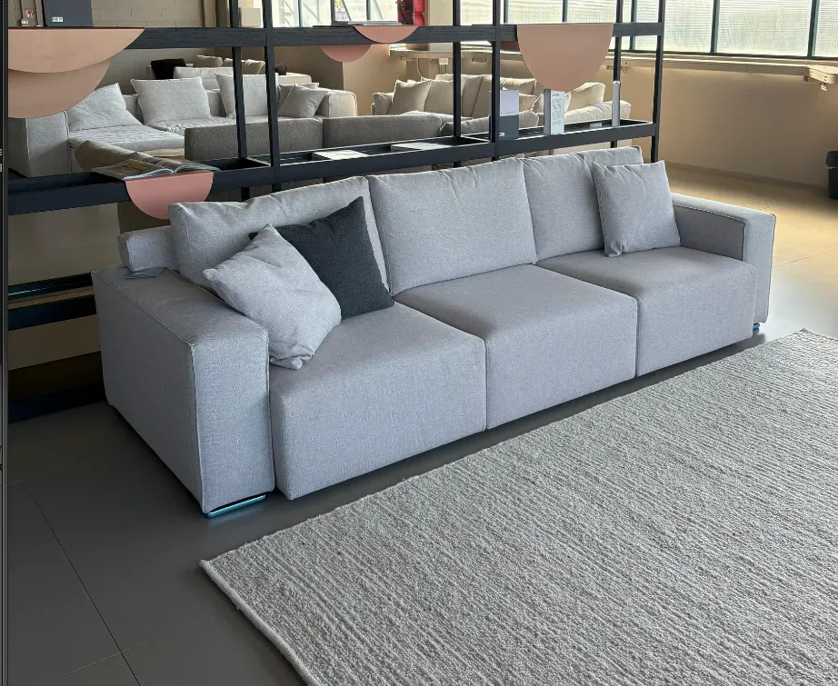 Divano mod.Charlie L.316cm con 3 sedute da 90cm tessuto fin.2012/130 cat.A completo di n.01 guanciale 40x40cm tessuto Dragonera 02 cat.STAR e n.01 guanciale 40x40cm tessuto Vedra 02 cat.STAR