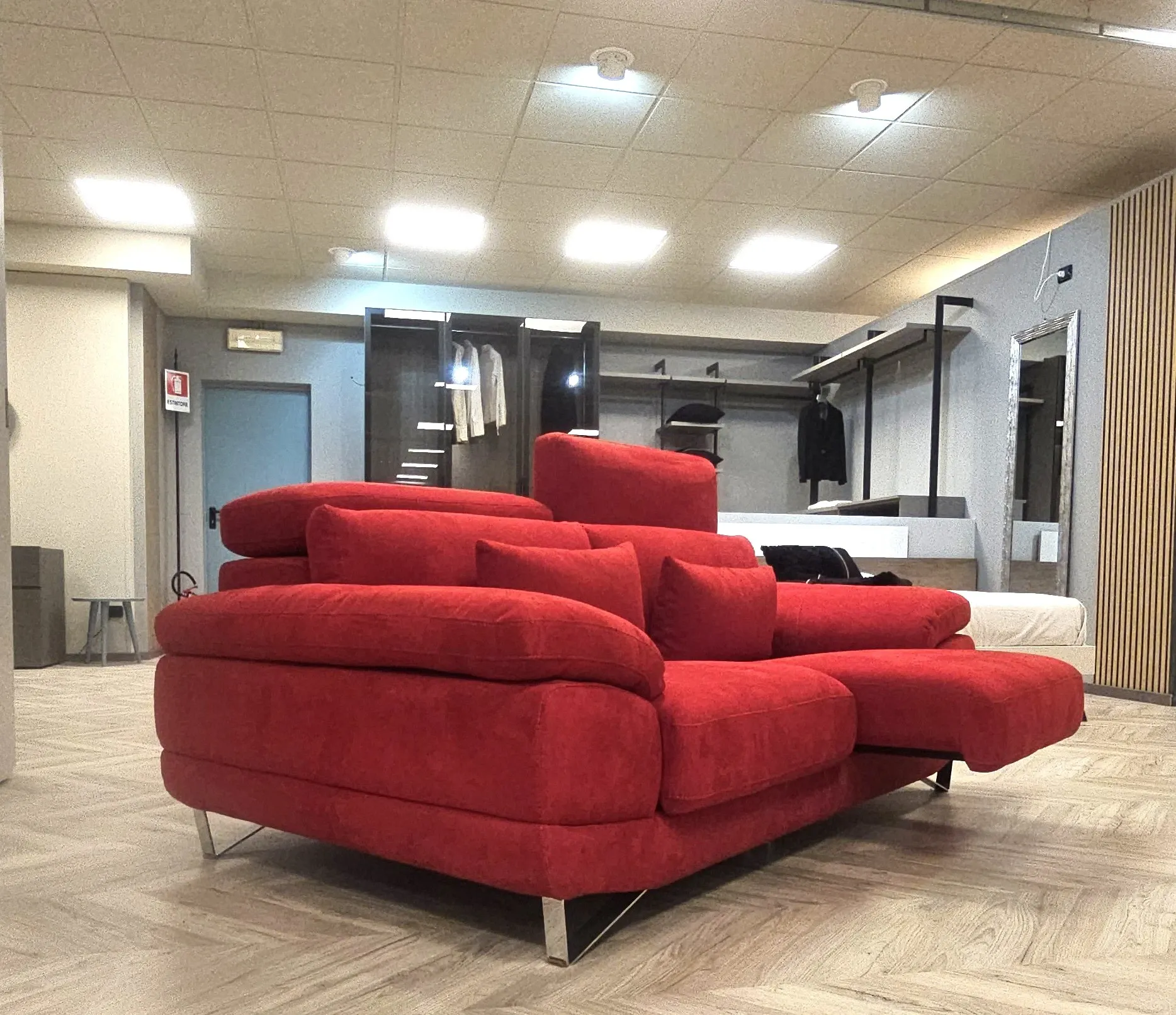 Divano mod.eddy con chaise-longue rivestito in tessuto in promo-sconto del 50% Excò