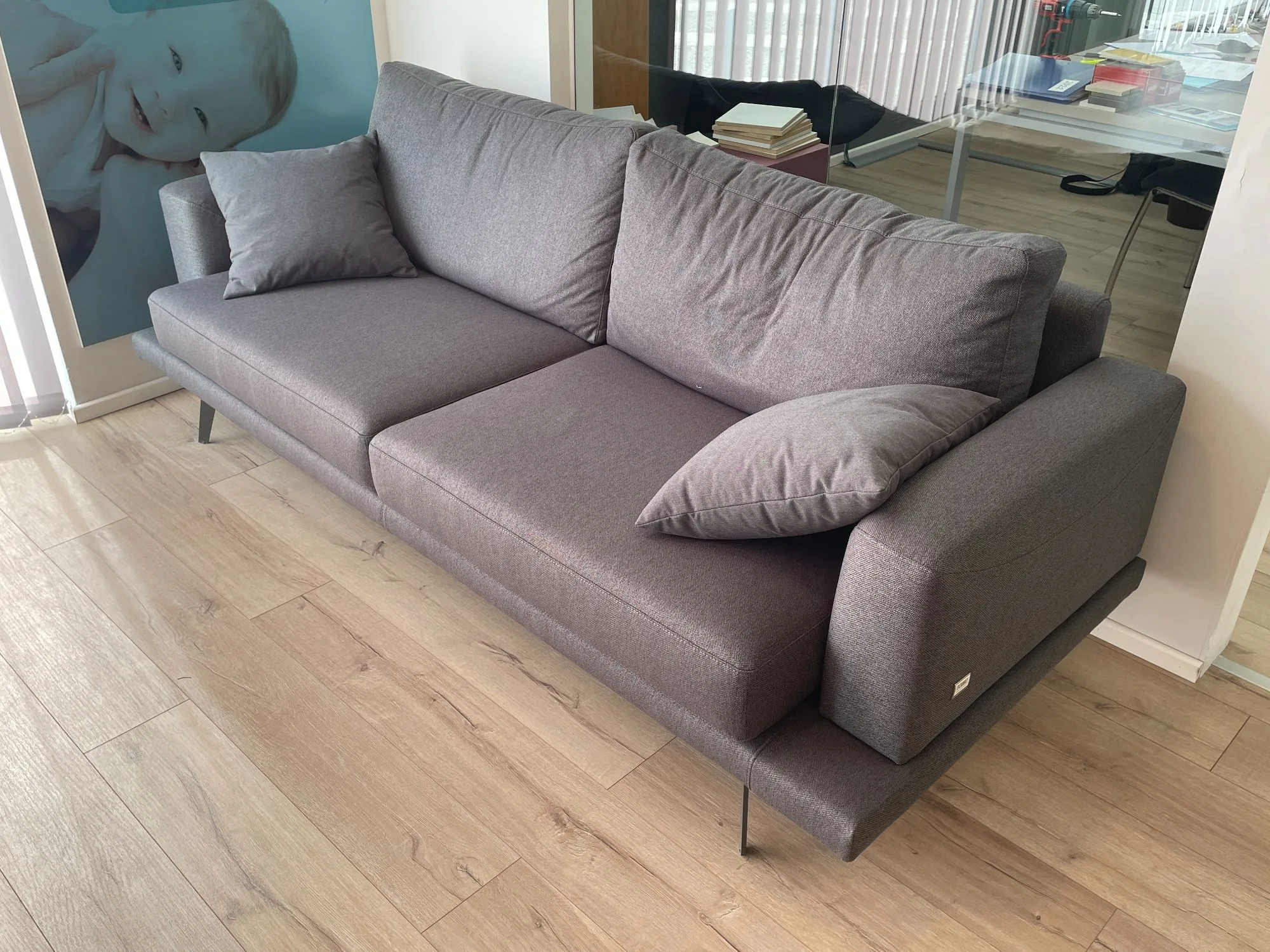 Un divano sospeso con bracciolo minimal, dalle linee decise ed essenziali e il basamento alto di questo divano sono elementi caratterizzati e funzionali di questo modello.