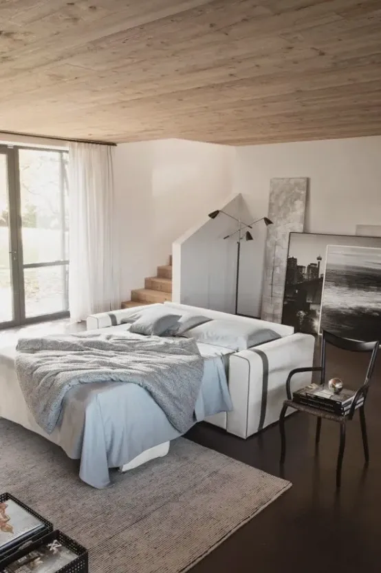 Che tu voglia ammobiliare un living di ogni genere, che sia di dimensioni più o meno ridotte, Divano letto f visibile in foto saprà trovare la soluzione perfetta per te, confermando particolari atmosfere in stile moderno che rispecchino i tuoi gusti.