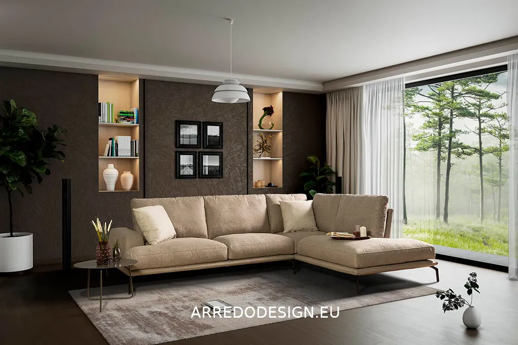 - Se vuoi arredare il tuo living seguendo un mood attuale, scegli imbottiti in tonalità sgargianti, mentre se desideri ricreare un'atmosfera di gusto classico con uno spiccato senso di accoglienza, sceglierai rivestimenti nelle tonalità calde o intermedie: l'imbottito Ethan è rivestito in tessuto, materiale perfetto per garantirti morbidezza negli anni, nonchè di ultimare il living anche dal punto di vista estetico.