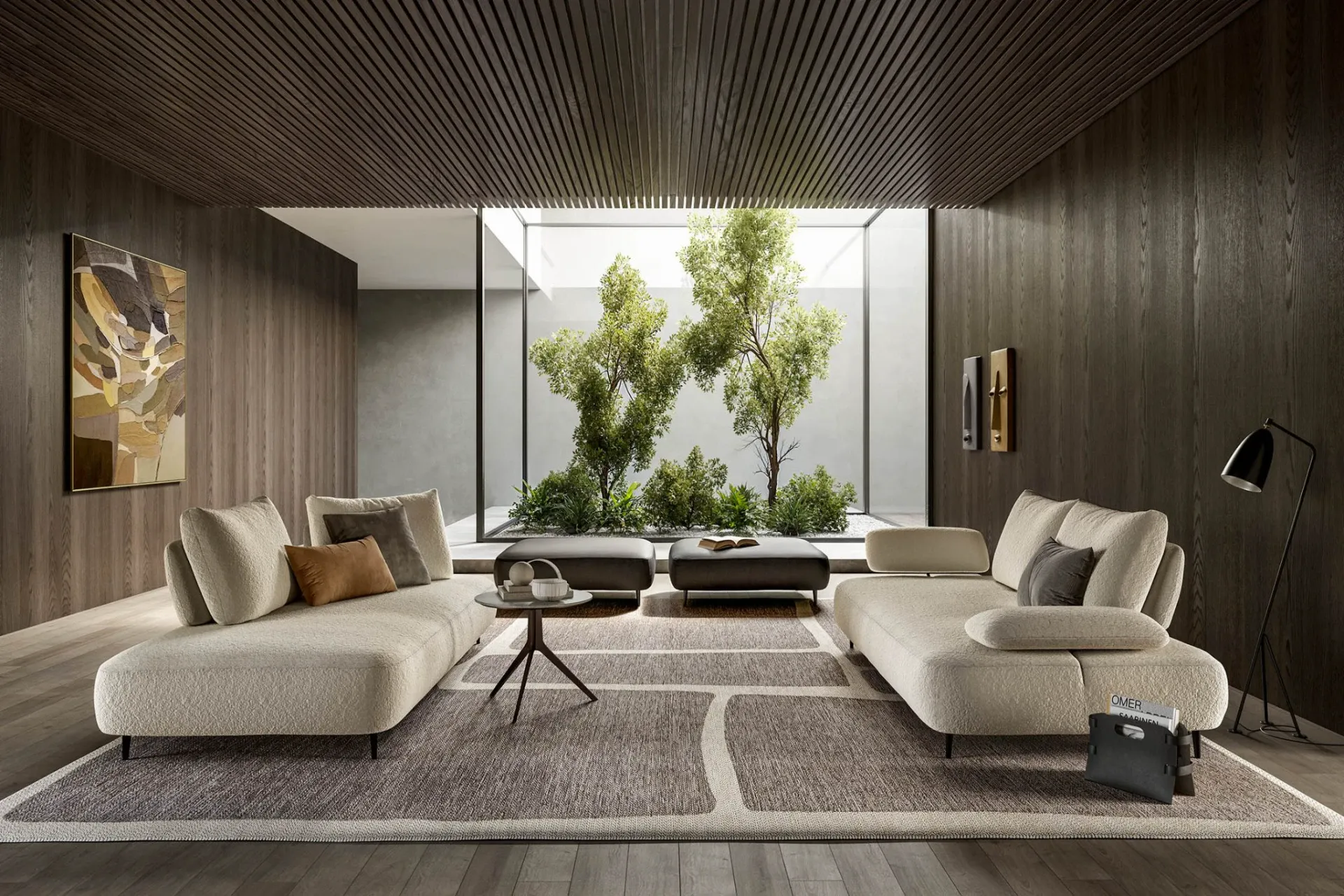 - Al fine di organizzare al meglio lo spazio nel soggiorno, bisogna scegliere gli arredi in base a conformazione e dimensione dei locali, selezionando dunque anche la tipologia di imbottito che fa al caso tuo tra divani, poltrone, divani letto e molto altro; il modello visibile in foto è appartenente alla linea di lineari di ottima fattura firmati dal brand.