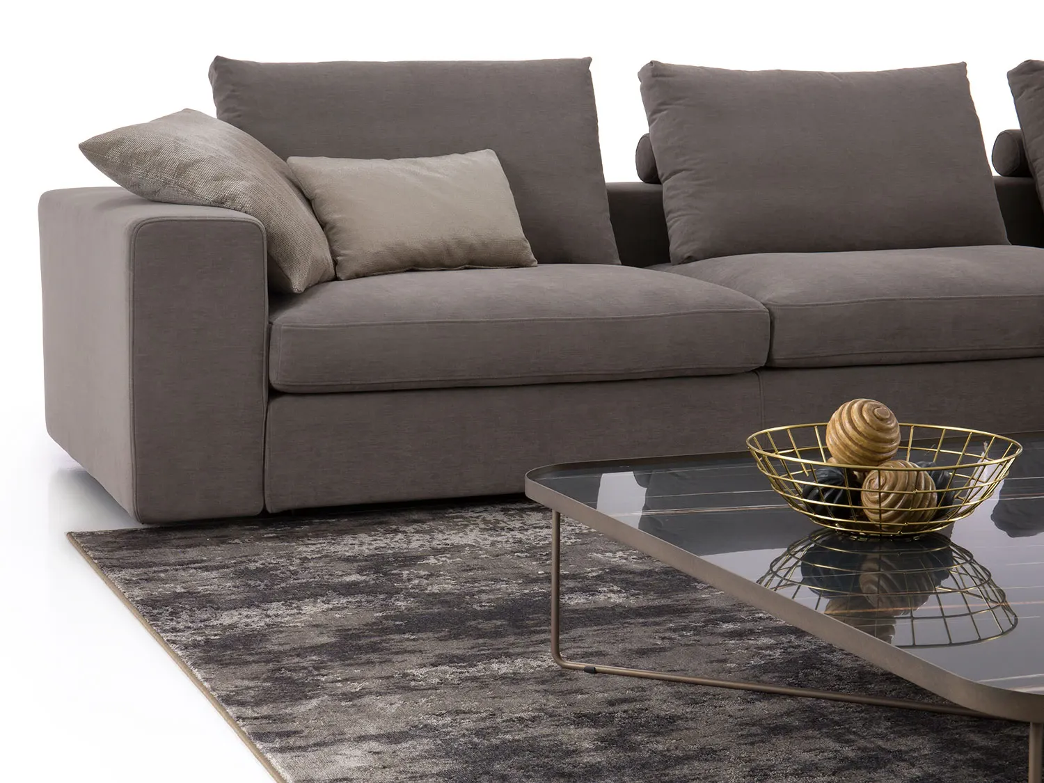 Hyeres outlet è un divano moderno caratterizzato da forme generose, accoglienti e conviviali, pensato per offrire il massimo comfort. I cuscini dello schienale sono imbottiti in soffice piuma naturale, mentre quelli della seduta sono realizzati in poliuretano espanso sagomato con densità differenziate e rivestiti da una falda acrilica effetto piuma. Questa combinazione assicura un sostegno ergonomico e una piacevole sensazione di morbidezza. Il design essenziale e la sobrietà delle linee lasciano spazio al relax e al benessere quotidiano.