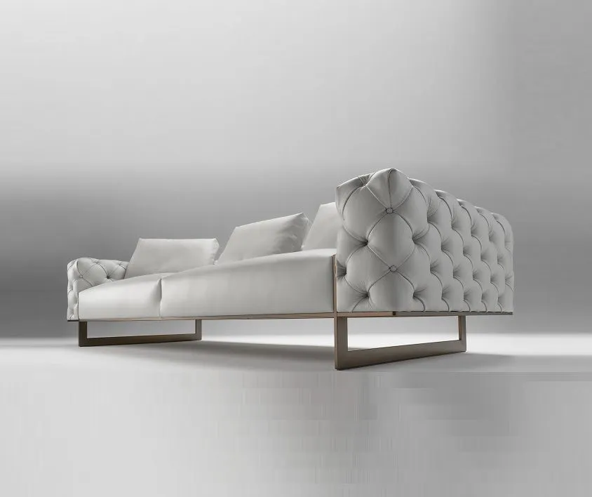 Per creare particolari atmosfere moderne nel tuo living, opta per imbottiti dalle tonalità più accese, al contrario per quelle più tradizionali, opta per soluzioni in nuance più calde o intermedie; il brand ha ideato un rivestimento in pelle per questo modello Divano a molle pelle capitonne, così da renderlo perfetto per completare l'estetica del living.