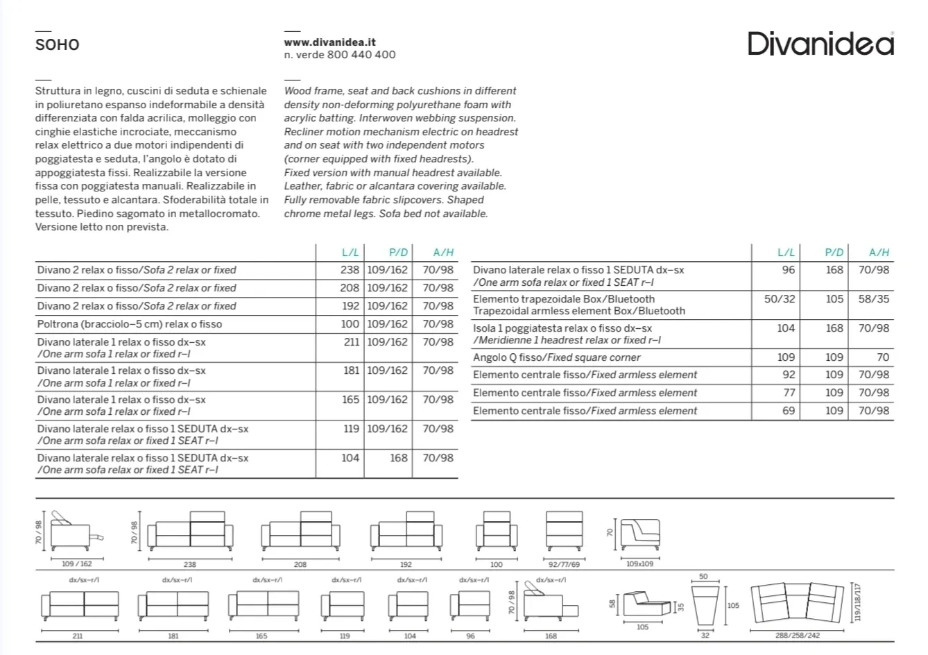 Non è prevista la versione divano-letto ma è disponibile la versione poltrona relax.