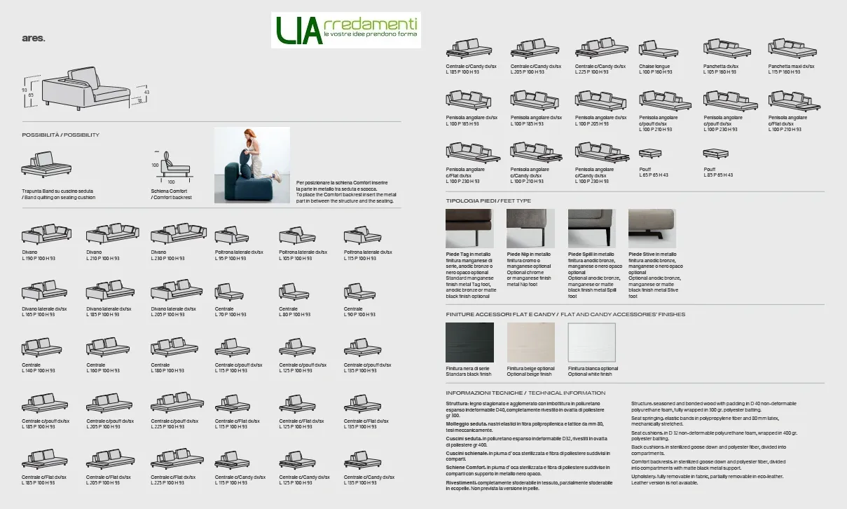 Modello Ares di Samoa ,interpreta il soggiorno come uno spazio da vivere in equilibrio tra stile e funzionalità. Le linee essenziali e la componibilità lo rendono un divano capace di adattarsi a diversi contesti, offrendo soluzioni personalizzate per chi ricerca originalità e comfort. I cuscini schienale in piuma d oca sterilizzata e fibra di poliestere, suddivisi in comparti