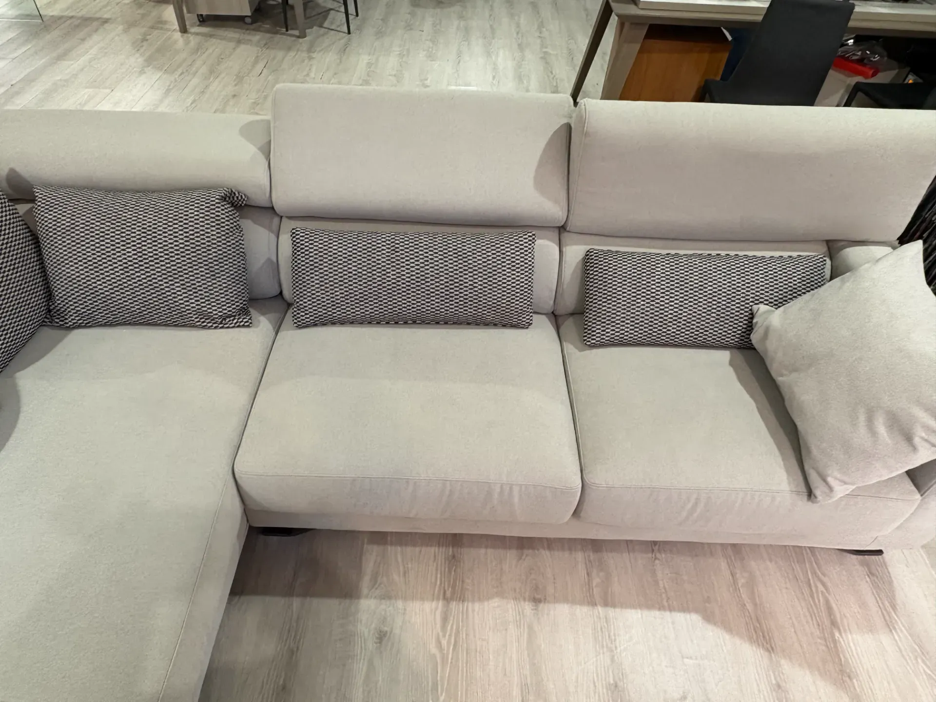 Composto da elemento con due sedute estraibili e elemento penisola , con poggia testa reclinabili completo di cuscini d'arredamento
