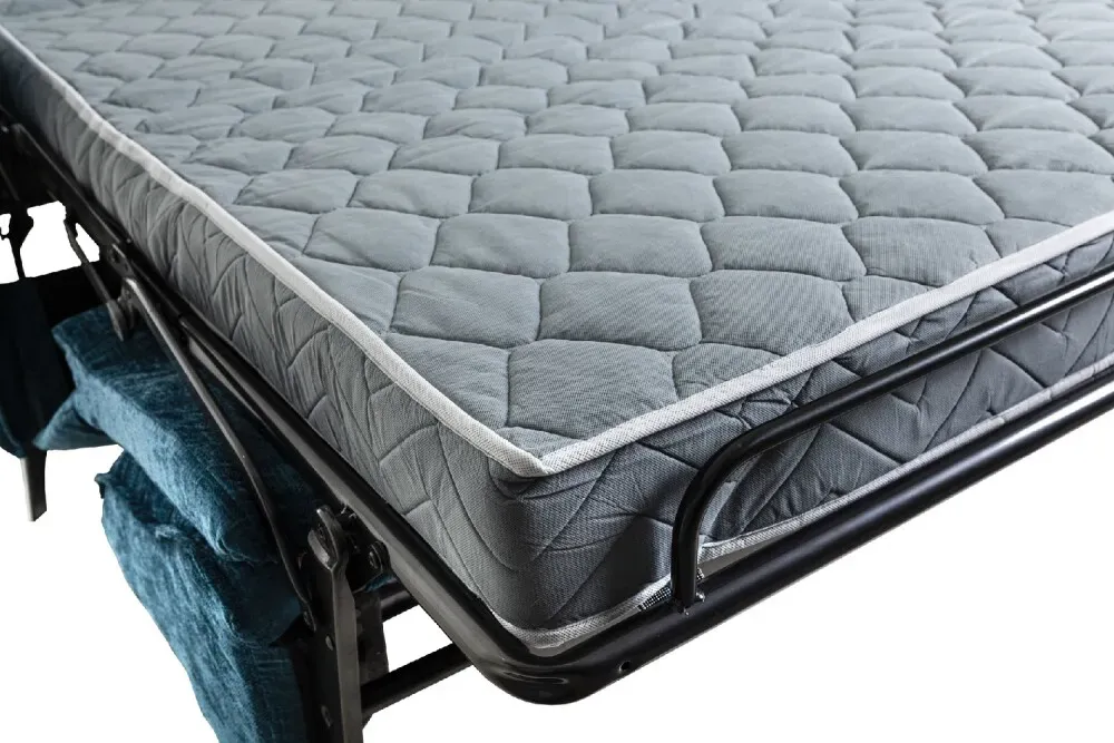 Il divano è equipaggiato con un materasso alto 17 cm, perfetto per garantire un riposo rigenerante ogni notte. La struttura interna in poliuretano espanso indeformabile ad alta densità, rivestito in resina di poliestere, assicura supporto ergonomico, traspirabilità e massima durata nel tempo.