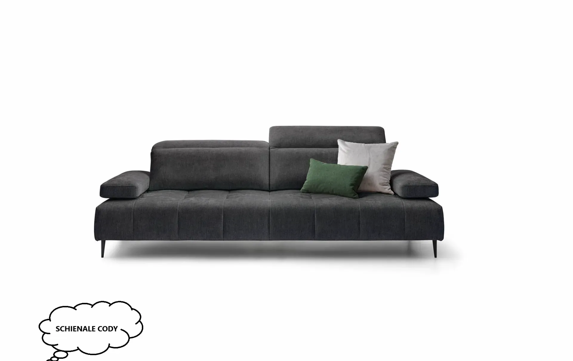 Composizione in foto lineare da cm. 223 , rivestimento considerato nella proposta in cat. B e schienale Dave e piedini Slim ,a richiesta tutte le categorie previste dalla Le Comfort.