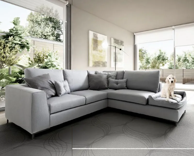 I divani angolari modello Harmony dalle linee moderne ed eleganti sono interamente rivestiti in uno speciale tessuto antimacchia ad alta resistenza all'usura e con una trama molto fitta che è particolarmente indicato alla vicinanza con gli animali domestici. La composizione in foto misura 263 x 246 cm; nel dettaglio troviamo un divano tre posti e una penisola che si chiude con un piano utile ad appoggiare la cuccia dell'animale. Penisola e divano sono staccabili e restano entrambi finiti con il tessuto del rivestimento. Il piedino rialzato è molto utile per una veloce pulizia del soggiorno. Lo speciale tessuto ha subito un trattamento che permette di rimuovere le macchie solo con acqua e sapone. Il prezzo è comprensivo di iva. Sono esclusi trasporto e montaggio. Siamo rivenditori Lecomfort nella zona di Milano. Consegniamo in tutta Italia.