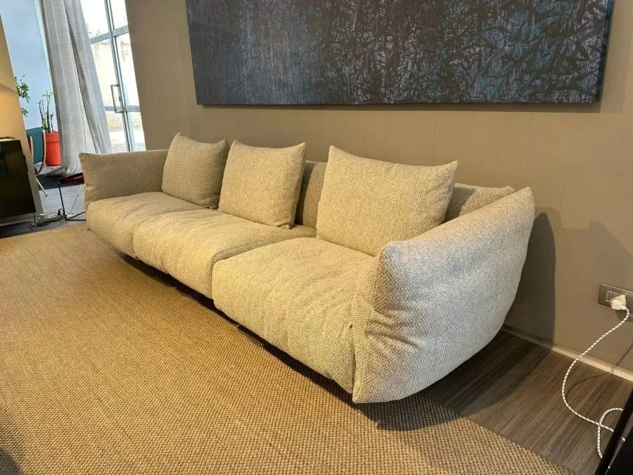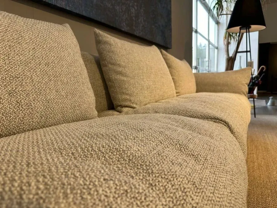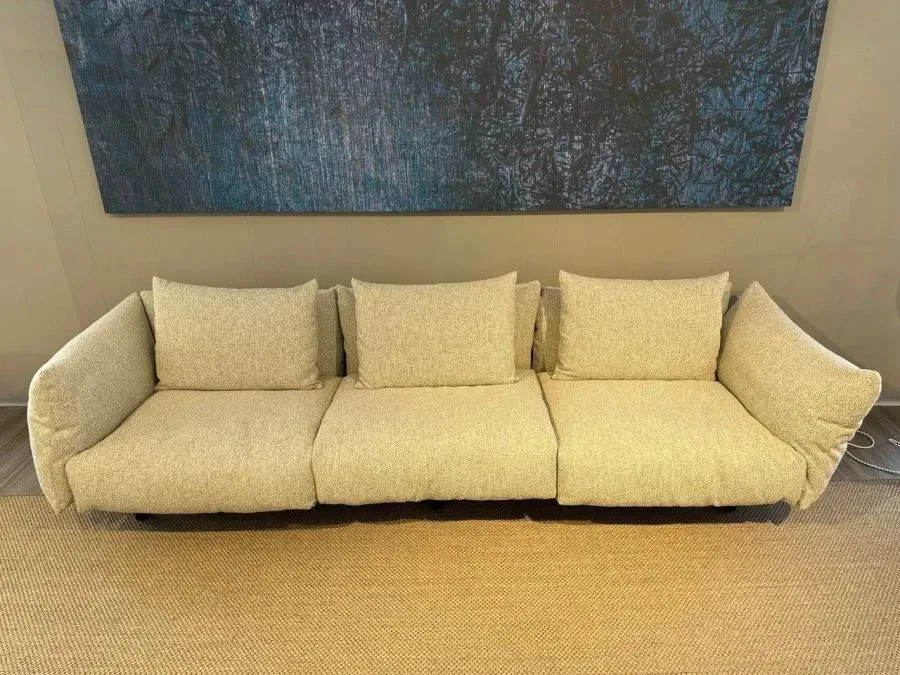 Il design del Soffio Eco Plus è caratterizzato da linee morbide e pulite, con un'estetica minimalista che si adatta con facilità a diversi stili d'arredo, dal moderno al classico. Le sedute sono ampie e accoglienti, studiate per garantire il massimo del relax, mentre i braccioli sottili e la struttura lineare del divano contribuiscono a creare un look leggero e raffinato. Questo equilibrio tra semplicità formale e comfort visivo rende Soffio Eco Plus un elemento d'arredo che aggiunge valore estetico senza appesantire l'ambiente.