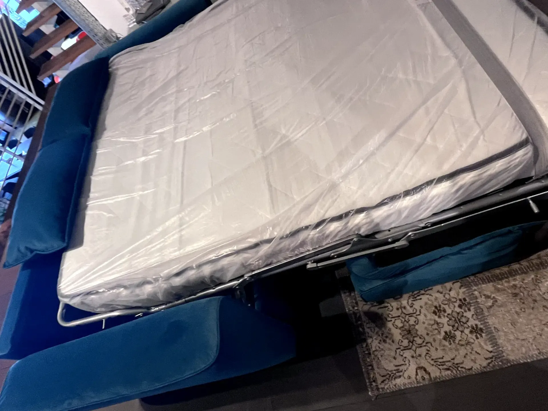 Il divano artigianale dalla seduta molto confortevole si trasforma in pochi secondi in un comodo e pratico letto, al cui interno un confortevole materasso da 20cm.