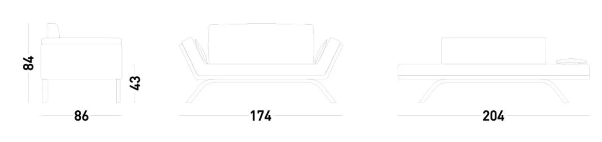 La poltrona Nicla di Dienne Salotti ha un meccanismo estremamente semplice che permette di trasformarla rapidamente in un letto. Con pochi movimenti, si apre passando da 174 cm a 204 cm di lunghezza.