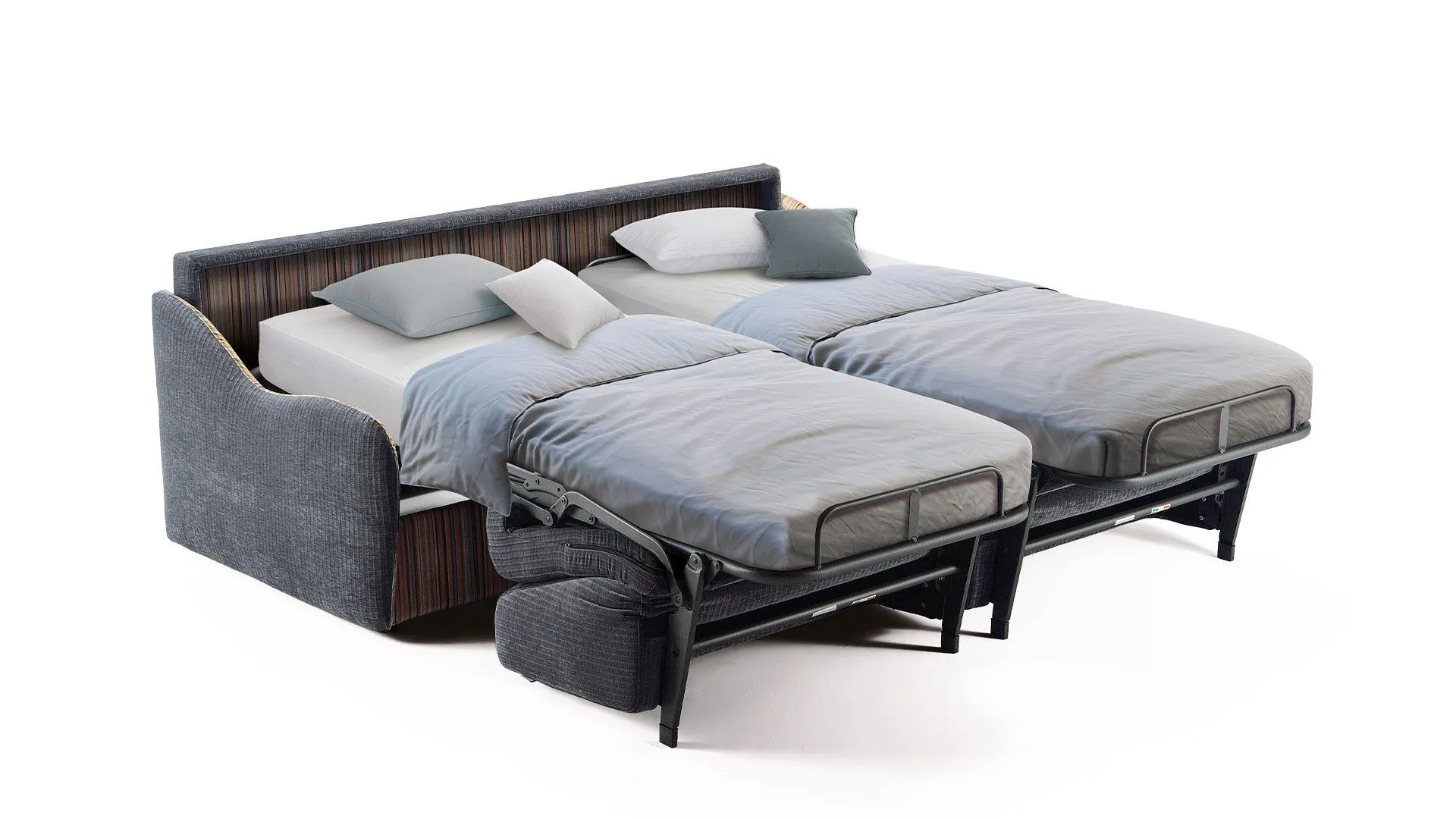Il modello in promozione speciale è la versione gemellare: in pochi gesti si trasforma da elegante divano a uno o due letti singoli completamente indipendenti, perfetti per accogliere amici, familiari o figli. Ideale per chi cerca soluzioni salvaspazio senza rinunciare al comfort o allo stile.