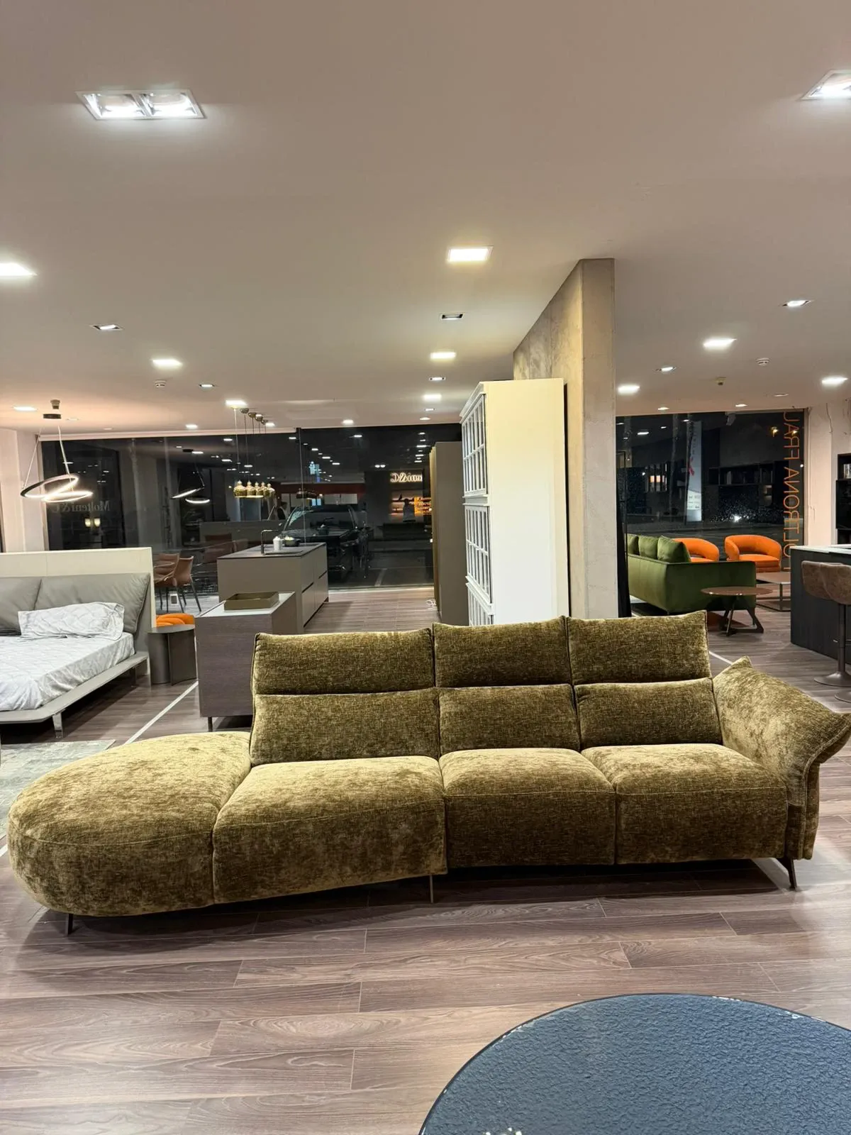 Il divano Levi Light di Franco Ferri: design moderno, comfort relax con bracciolo, poggiatesta e seduta reclinabile, perfetto per living eleganti. In offerta outlet scontata.