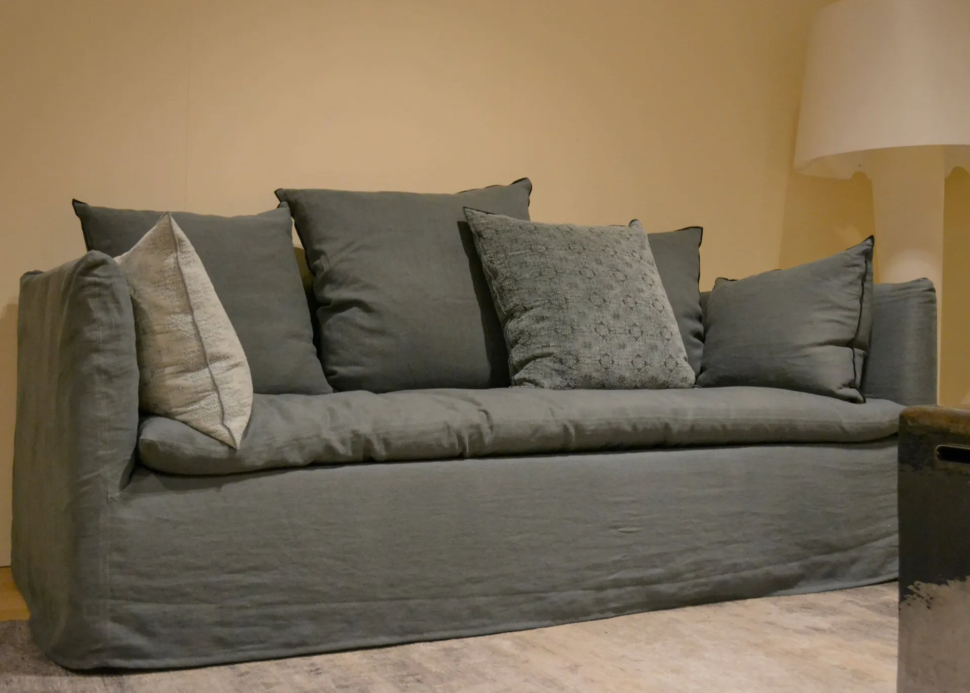 Raffinato e rilassato, il Canapé Boho 220 interpreta alla perfezione lo stile bohémien contemporaneo. Realizzato in lino stone-washed, un tessuto naturale e piacevole al tatto, regala un effetto morbido e vissuto che esalta la qualità artigianale del design francese Maison de Vacances.