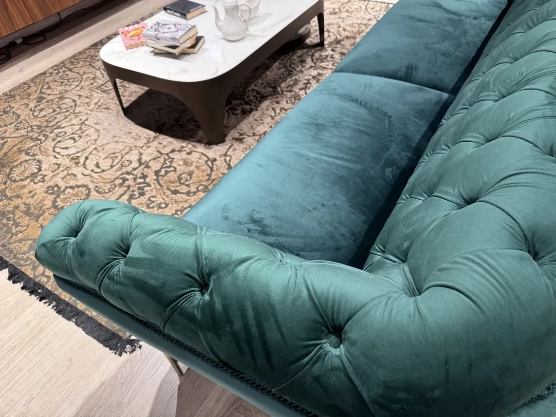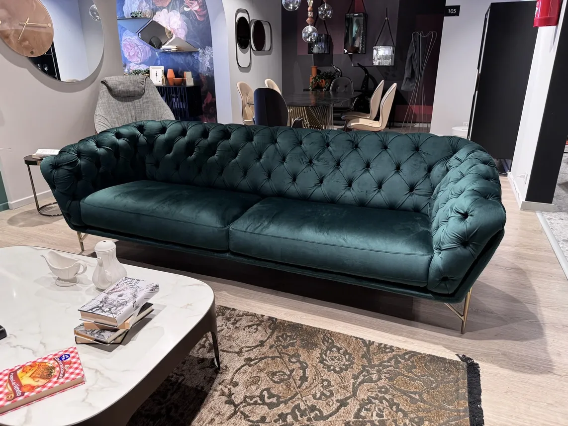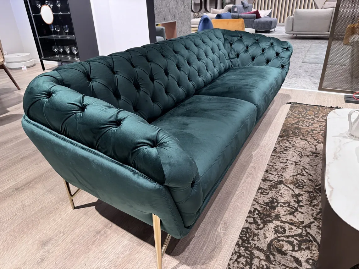 ART NOVEAU/DUBAI_DIVANO 3 POSTI MAXI MOD. ART NOUVEAU L.260 P.95 H.83 RIV. CAT TB DUBAI 3921 VERDE MUSCHIO PIEDE CHAMPAGNE