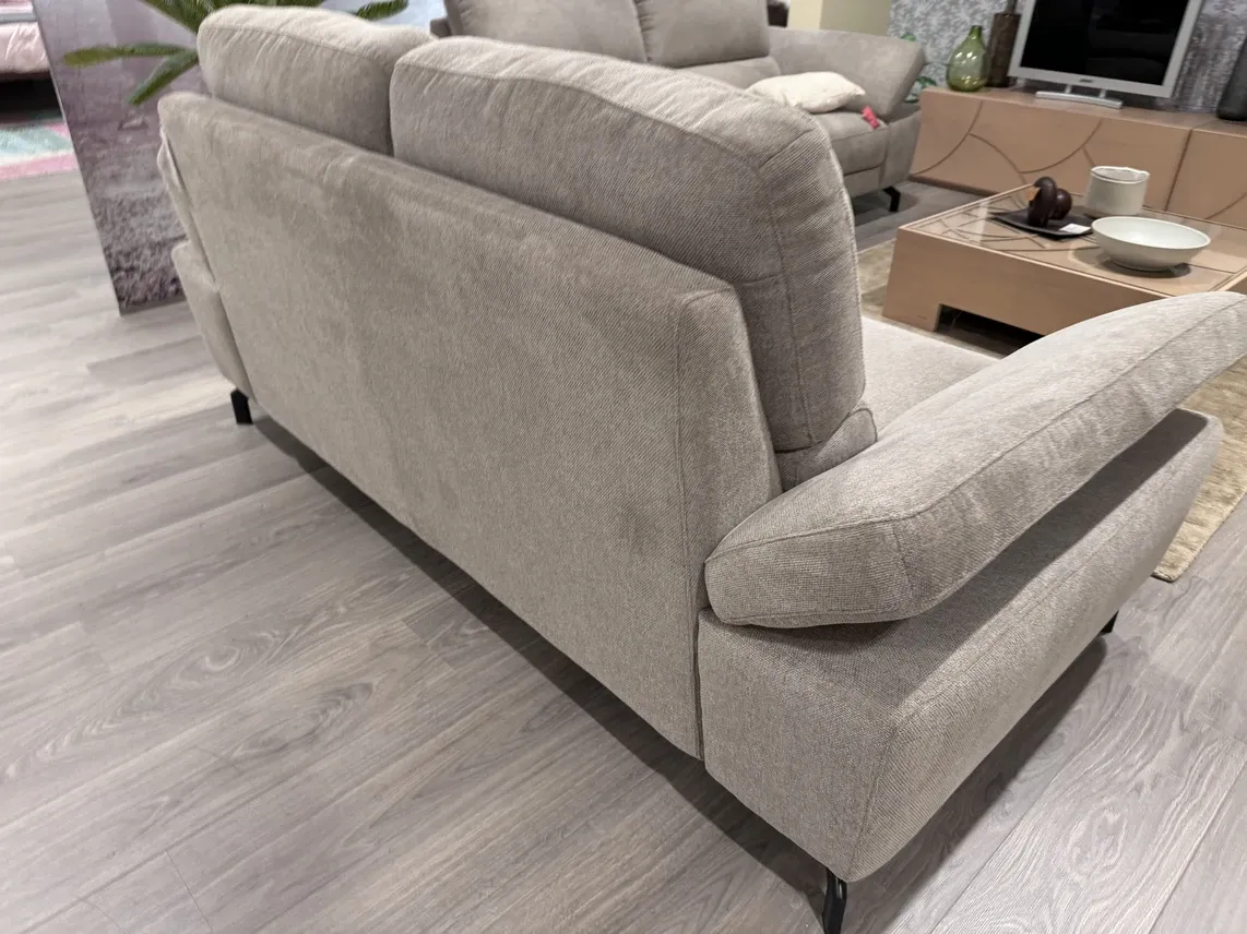 DIV.MAYA2P/ QUEENS-DIVANO MOD. MAYA 2 POSTI L.202 P.104 H.98 TESSUTO CAT 50 QUEENS COL.TAUPE' PIEDE OCEAN H.140 NERO