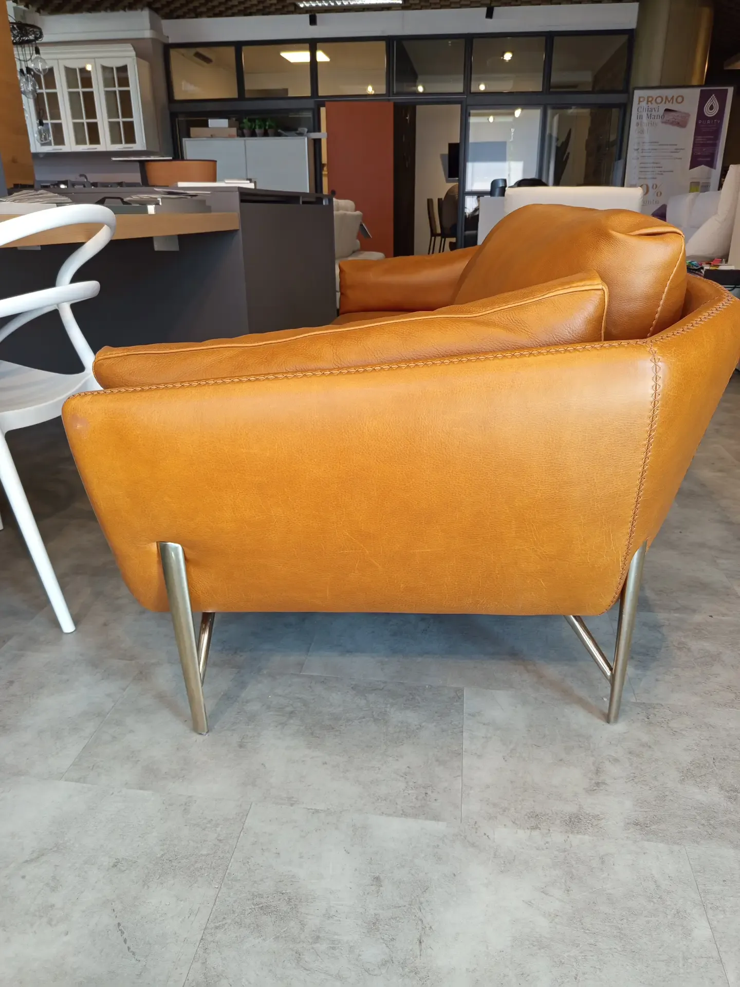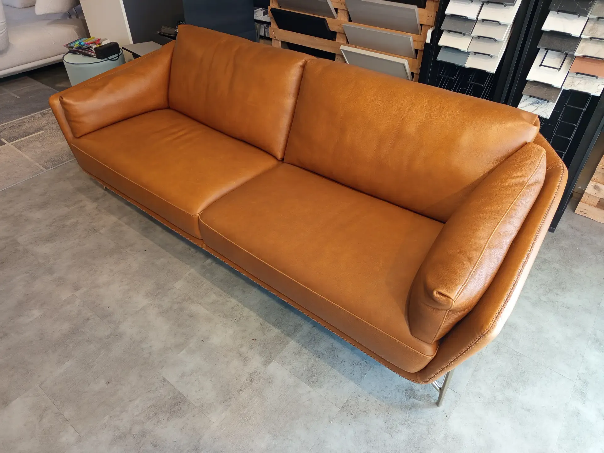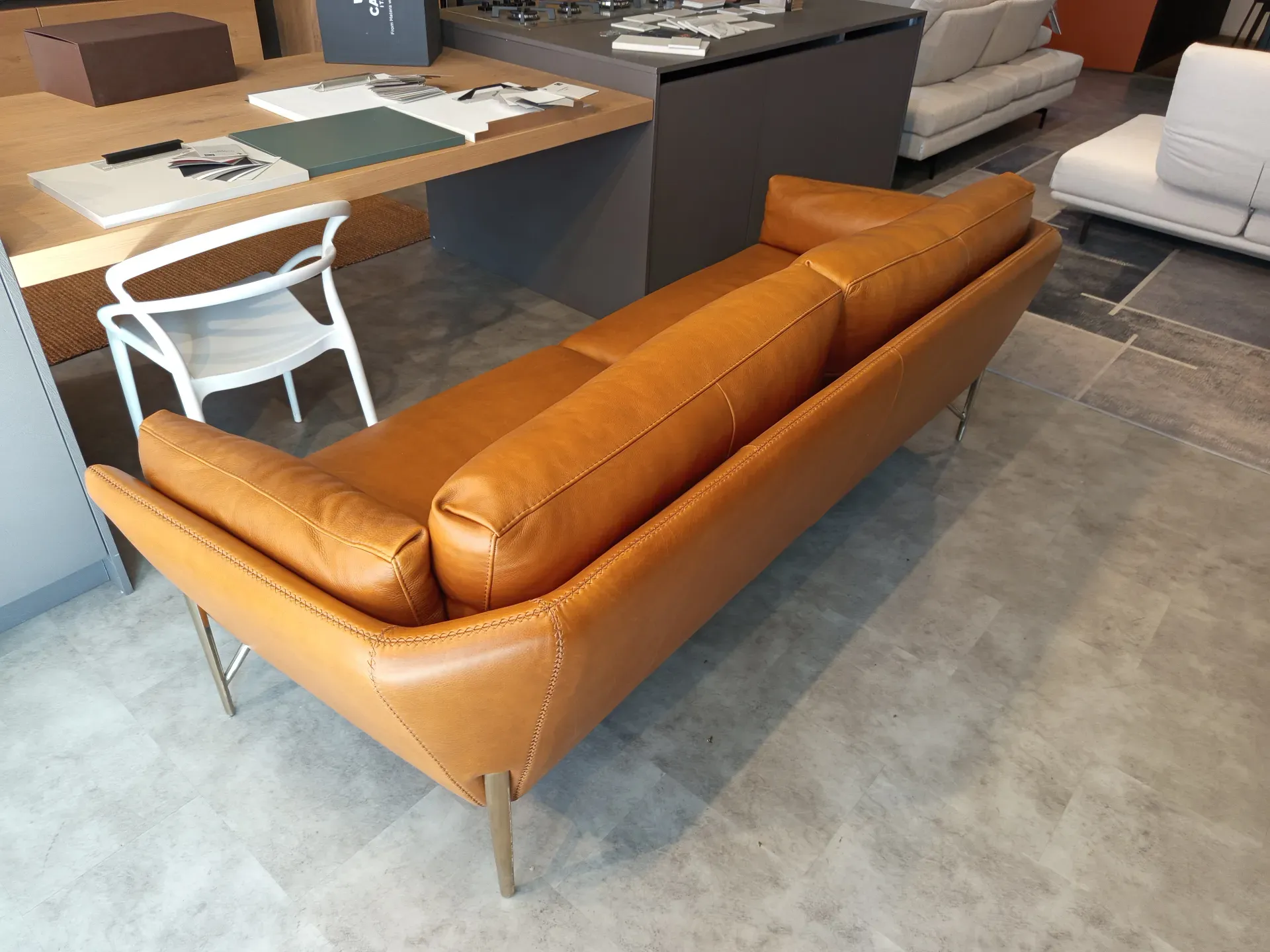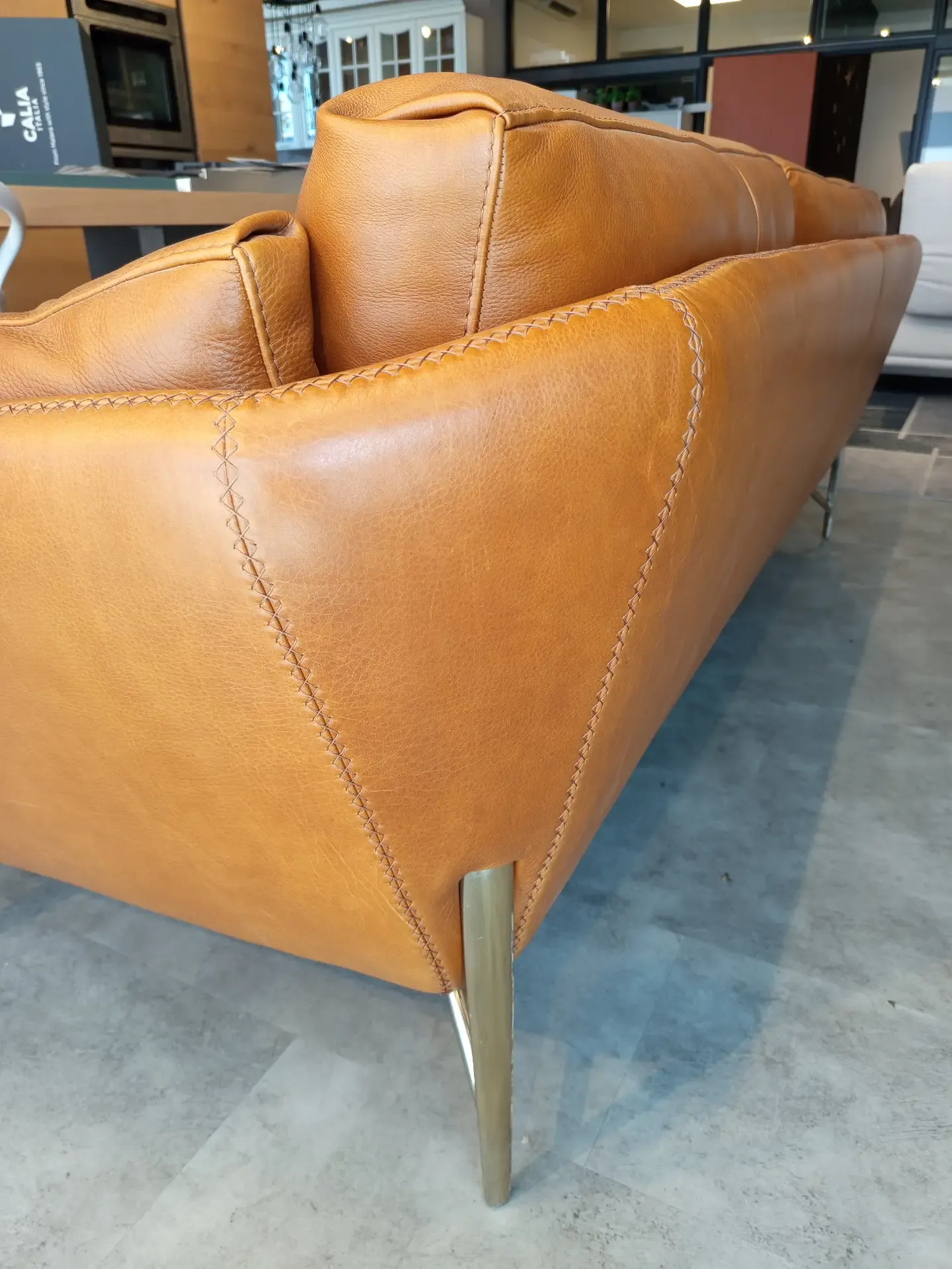 Divano Calia Italia Mod. Venere in in pelle Nature Cognac L.220 P.90 H. schienale 80 H. seduta 45 di altissima qualità e design. Pezzo Unico. Prezzo scontato. Visionabile su appuntamento presso il nostro showroom.